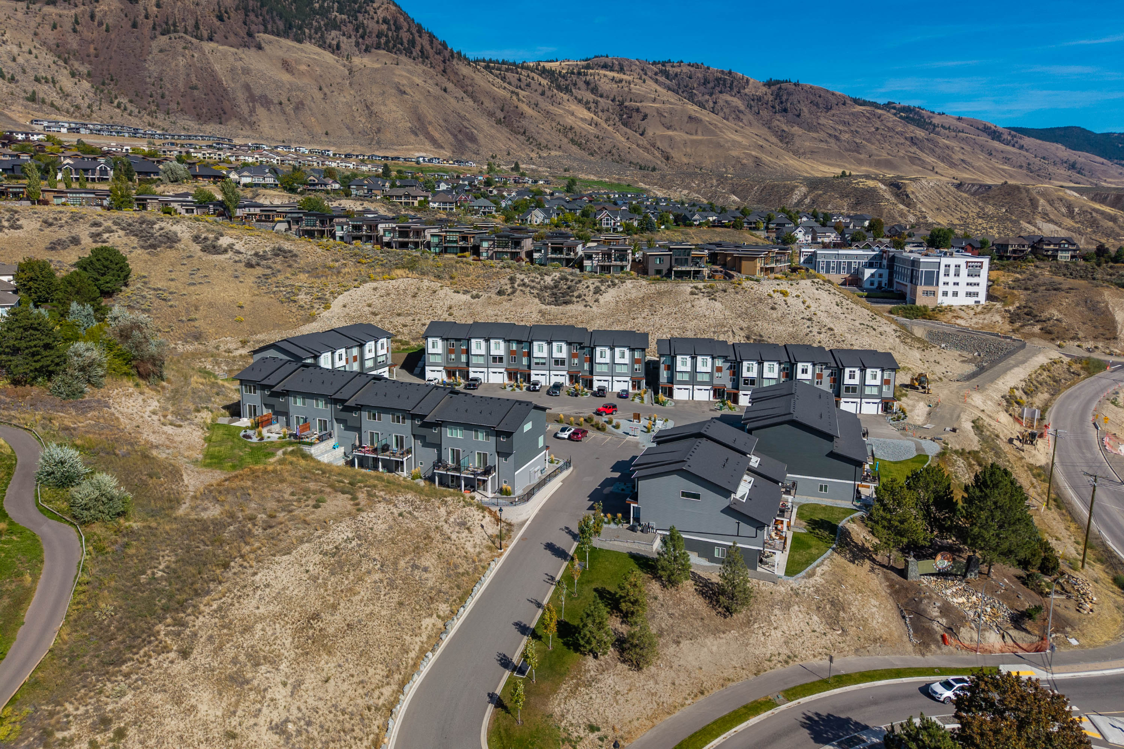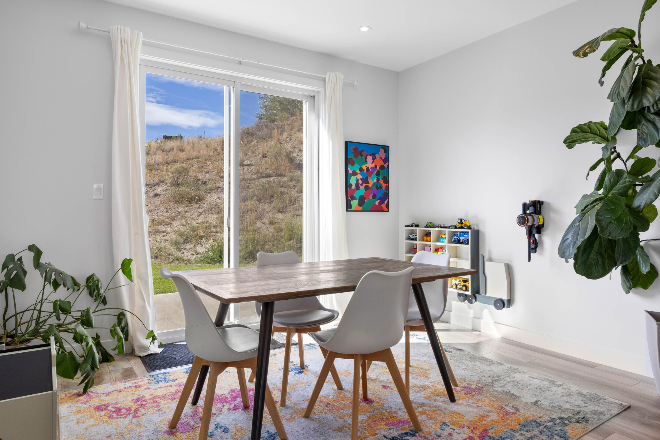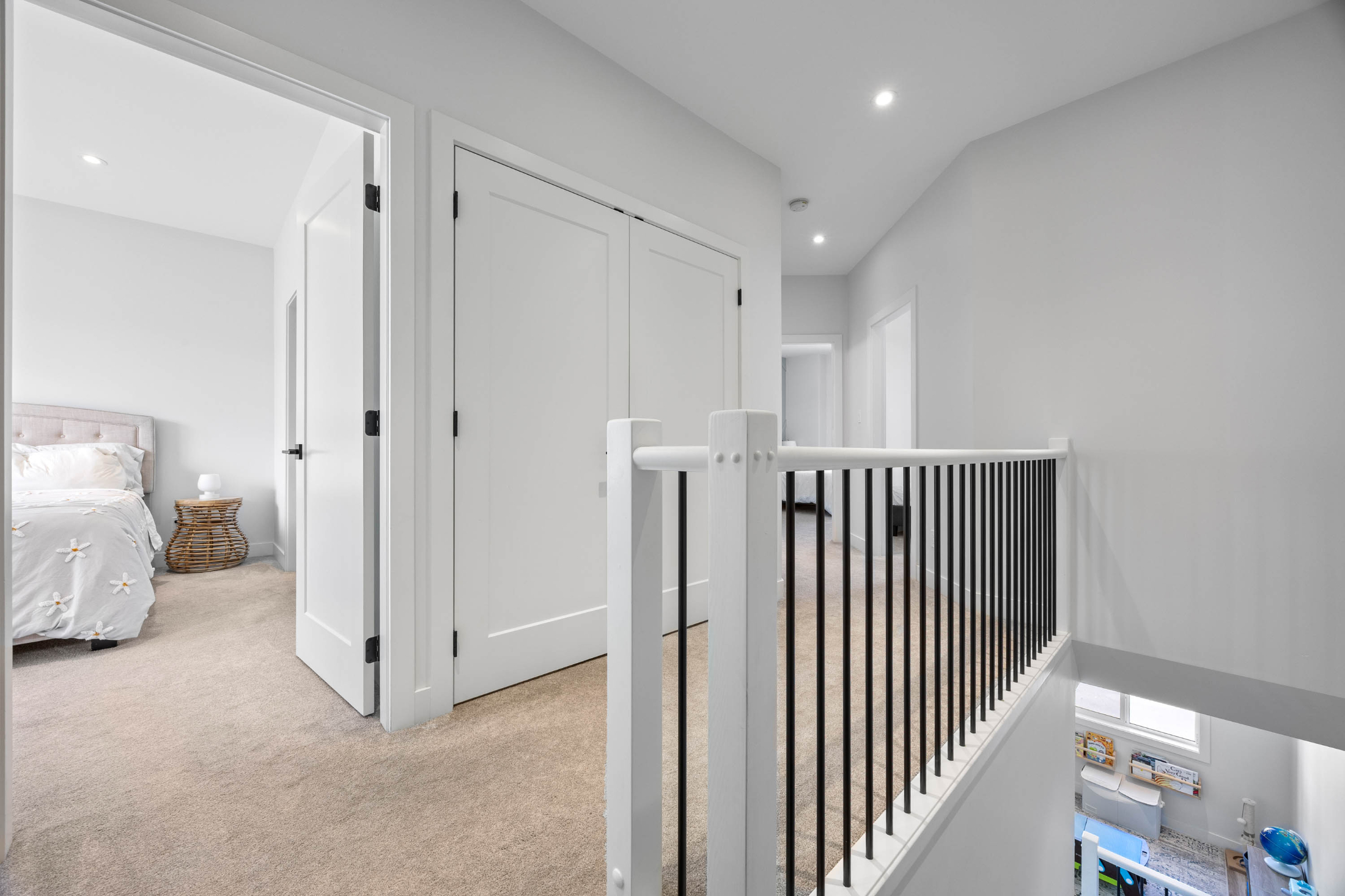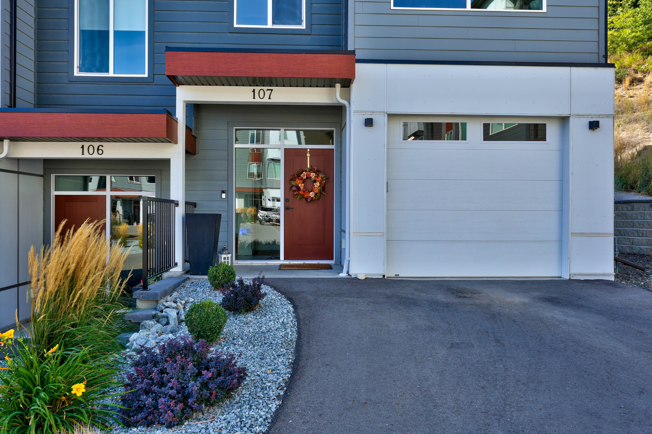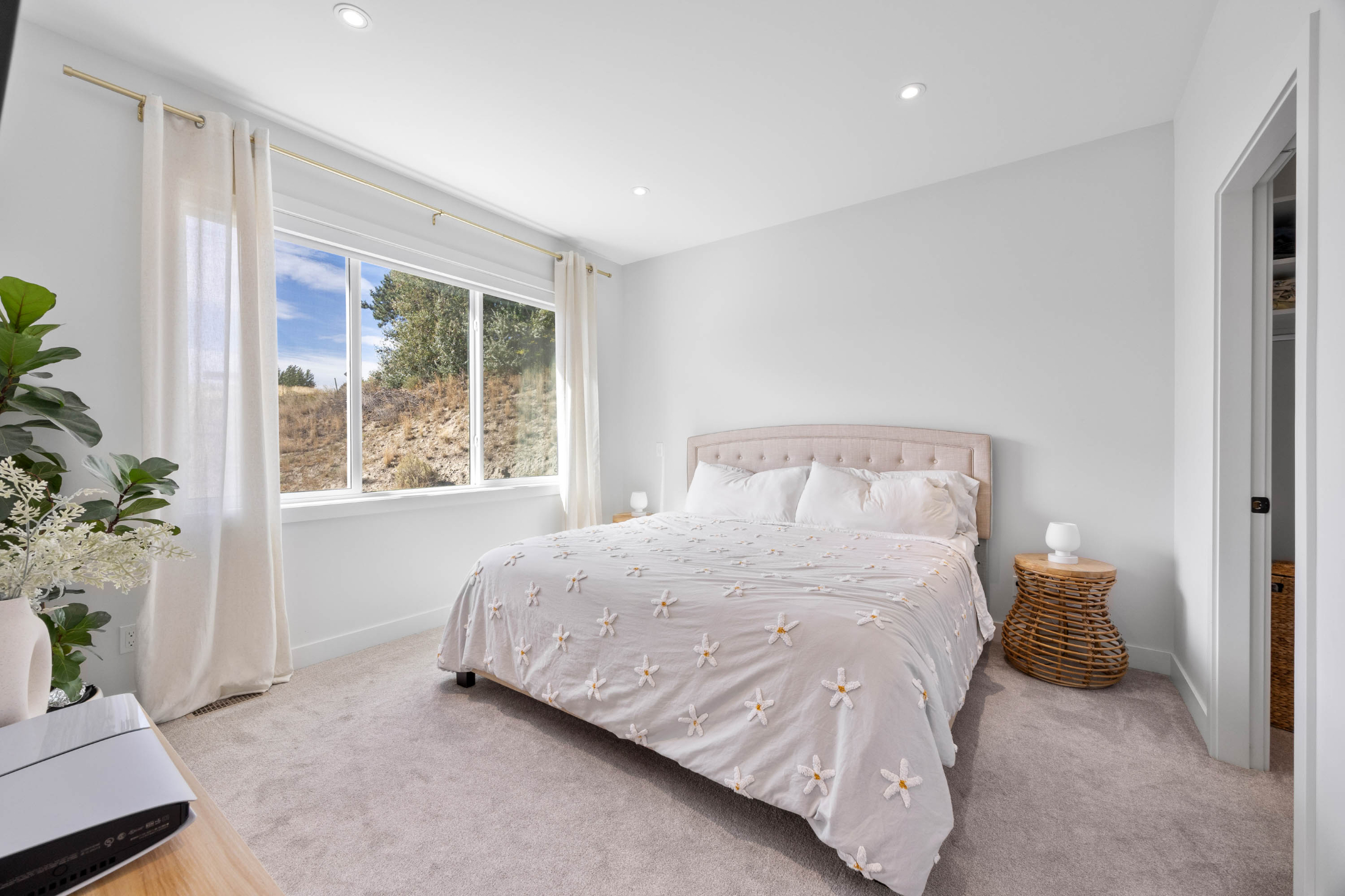 On the main floor you will find an inviting open-concept space featuring a large bright kitchen with quartz countertops, a central island, gas range and a built-in coffee bar—perfect for morning routines or entertaining. Sliding glass doors lead to a private patio with fantastic views of the valley. Additionally, you have a natural gas BBQ hook-up and added greenspace thanks to the end-unit location. A 2-piece powder room rounds out the floor.