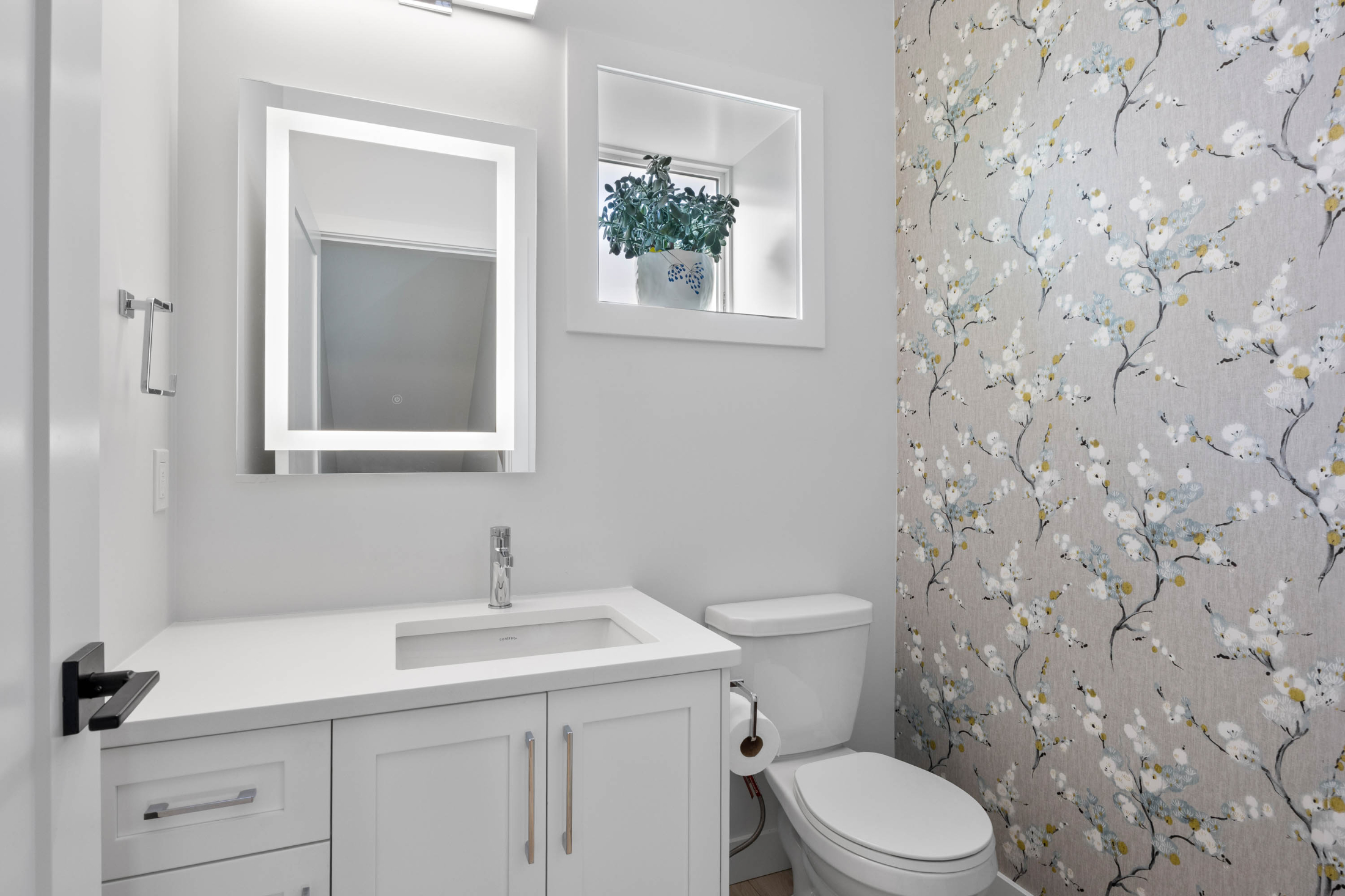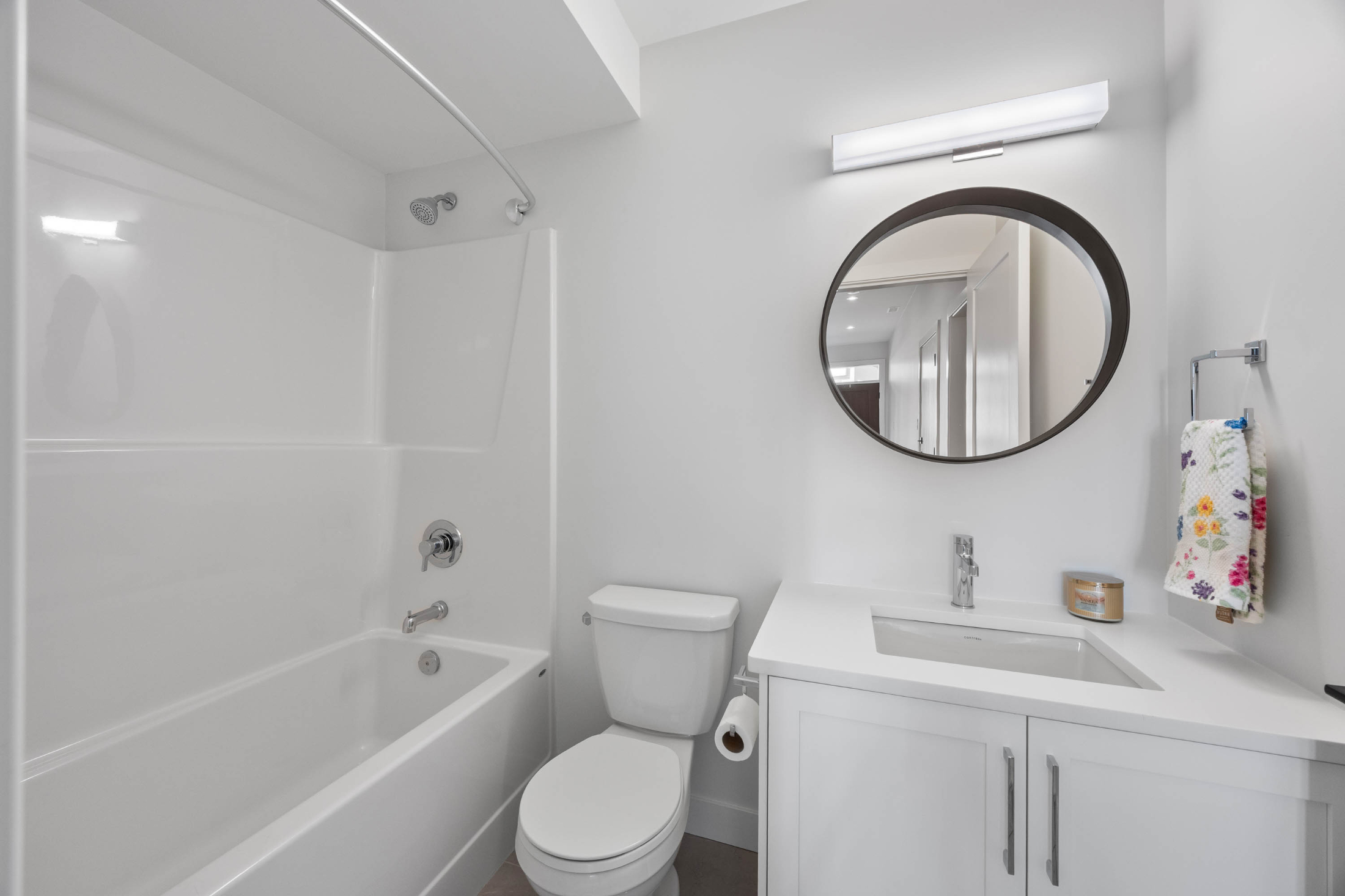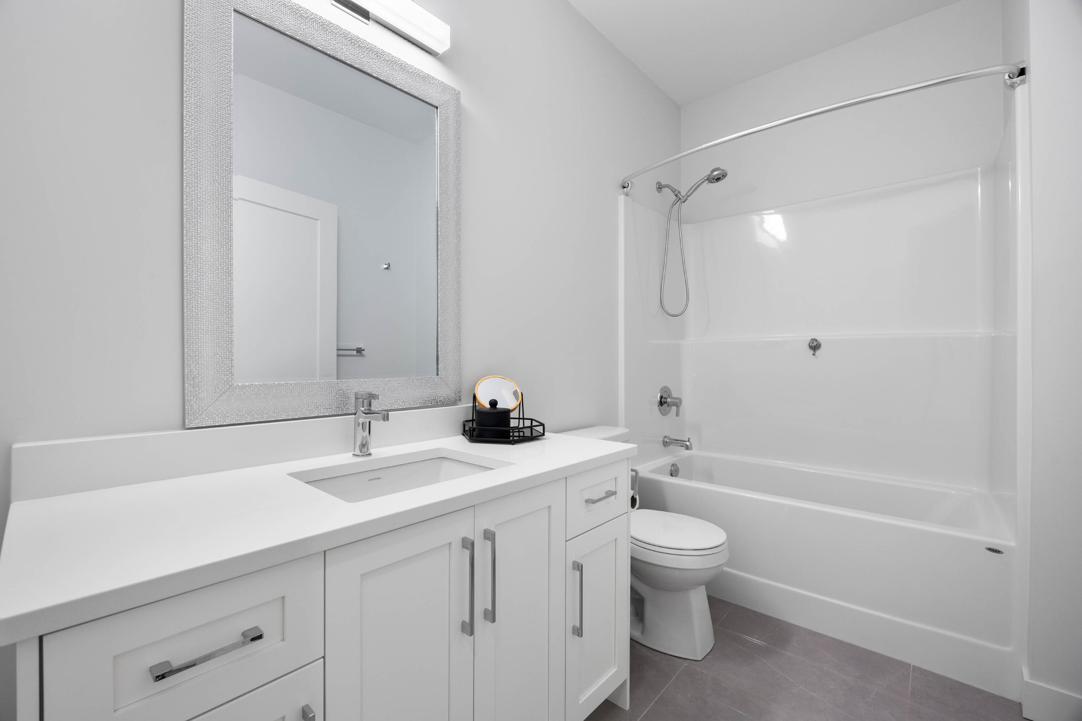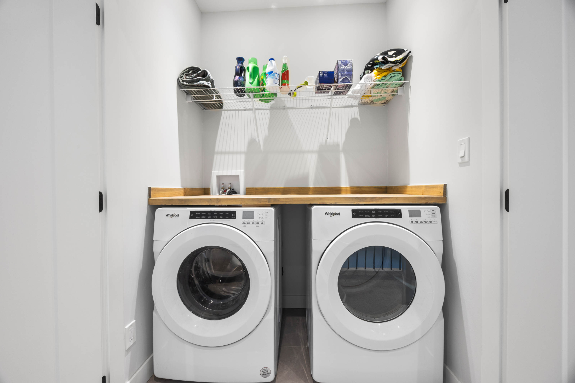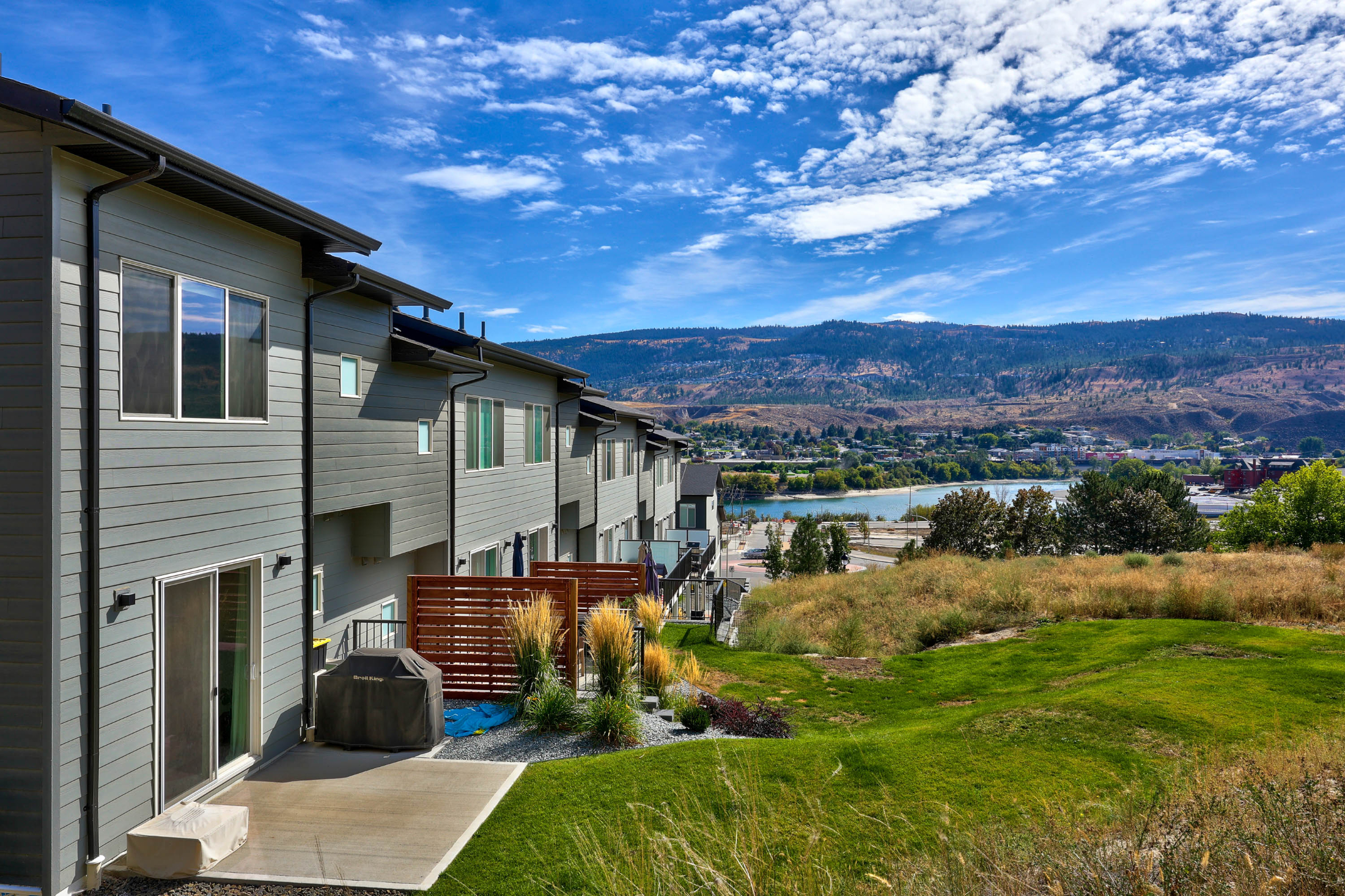 On the main floor you will find an inviting open-concept space featuring a large bright kitchen with quartz countertops, a central island, gas range and a built-in coffee bar—perfect for morning routines or entertaining. Sliding glass doors lead to a private patio with fantastic views of the valley. Additionally, you have a natural gas BBQ hook-up and added greenspace thanks to the end-unit location. A 2-piece powder room rounds out the floor.