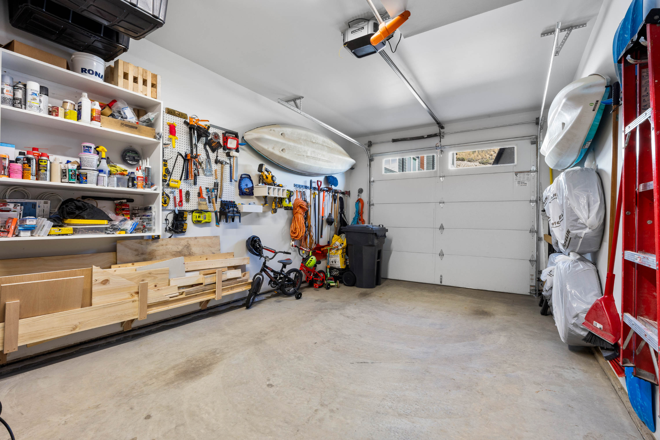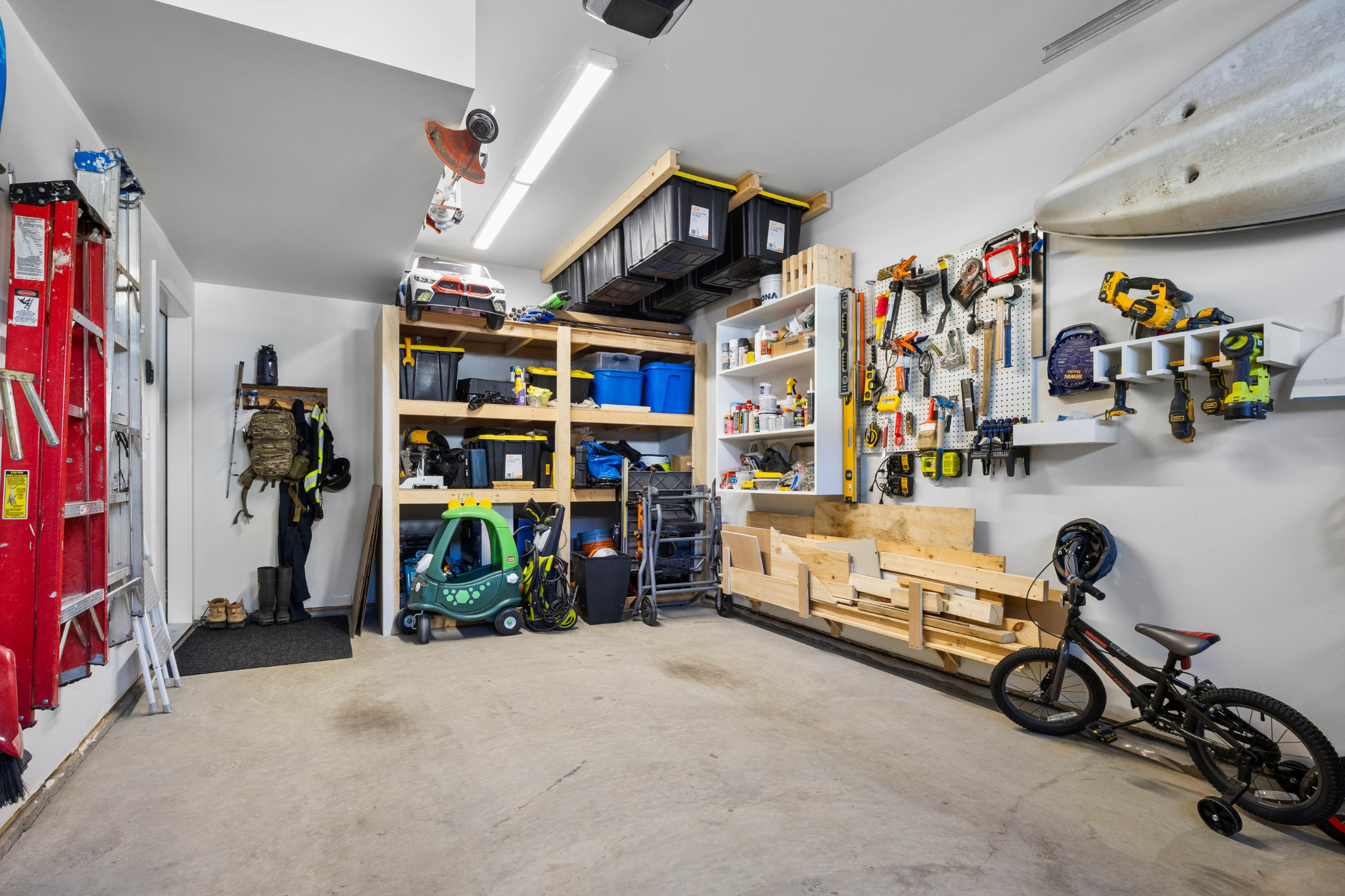 The ground level entry offers a single-car garage and a large entry way. A bonus flex room currently used as workout room and 4-piece bathroom add extra convenience for guests or family. Under-stair storage and shelving in the garage make organization a breeze.