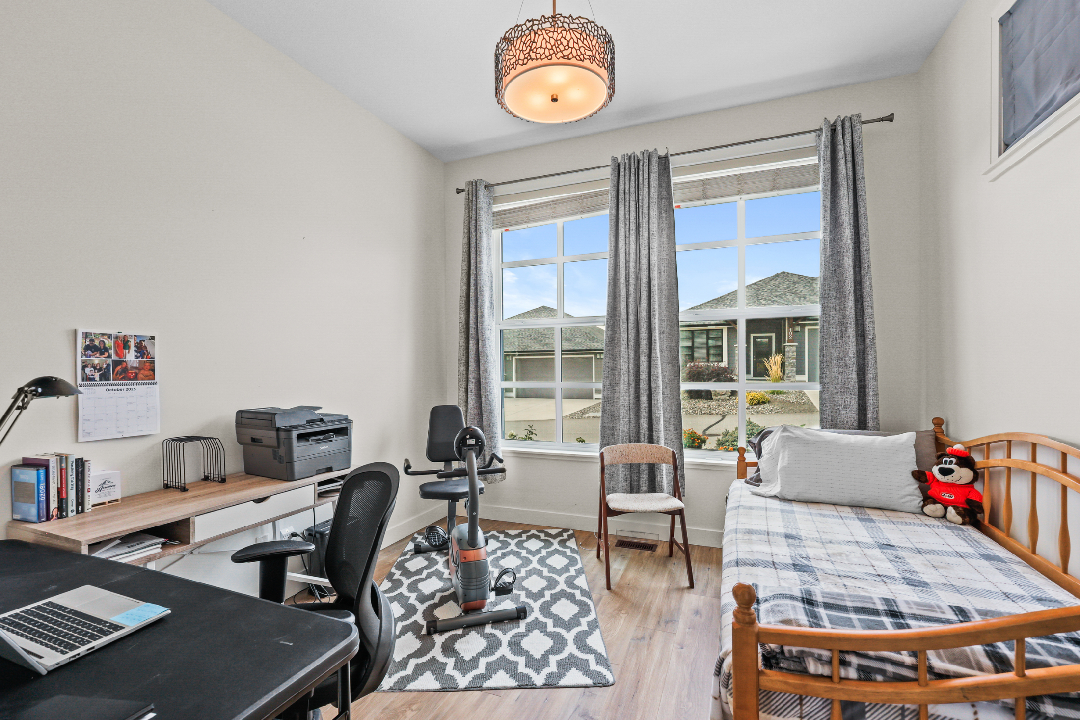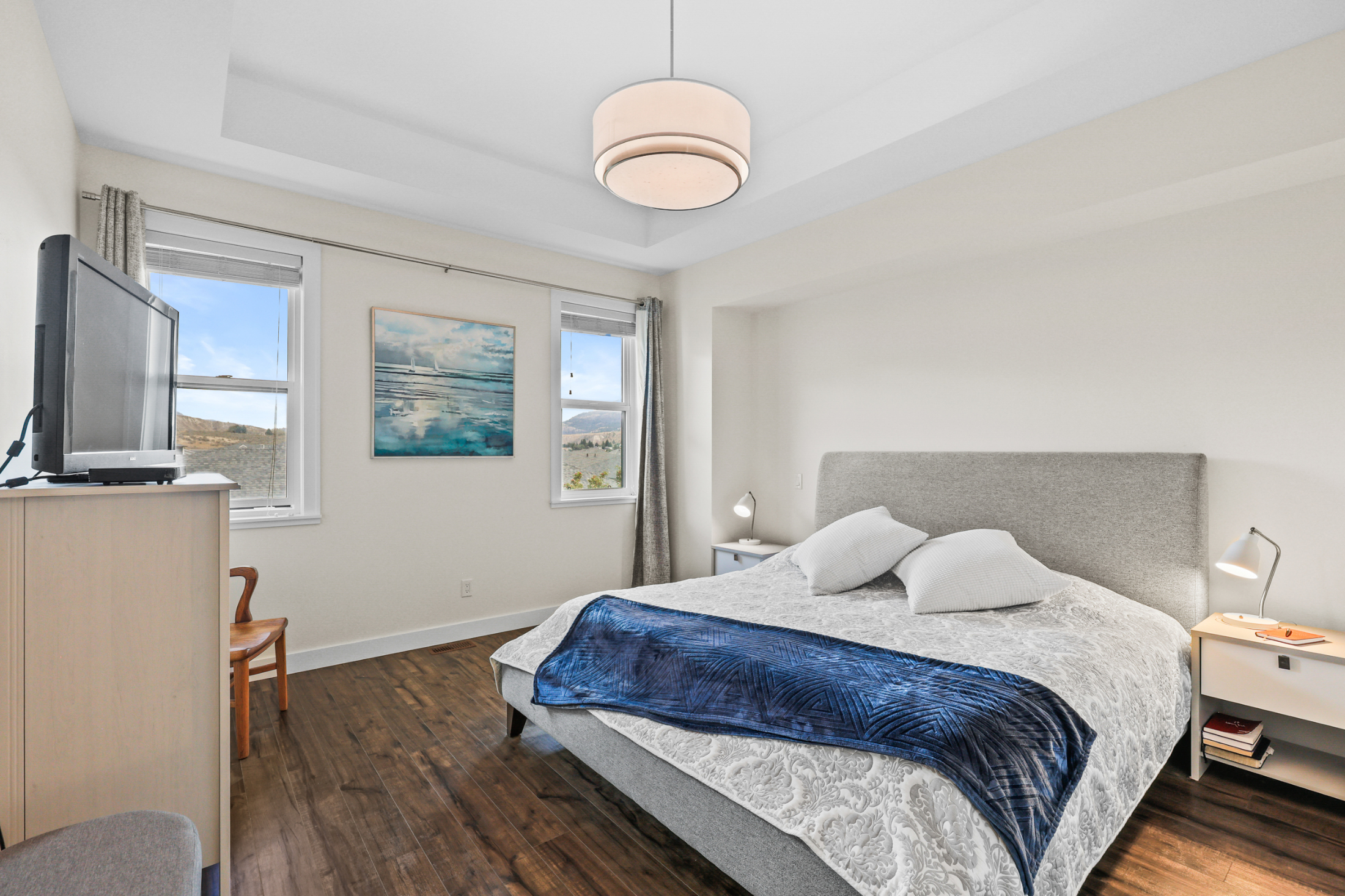 The primary bedroom suite has a large storage cabinet, a walk-in closet, and a very spacious 4pc ensuite bathroom with tile surround shower. Also on the main floor is an additional 4pc bathroom and a spacious second bedroom.
