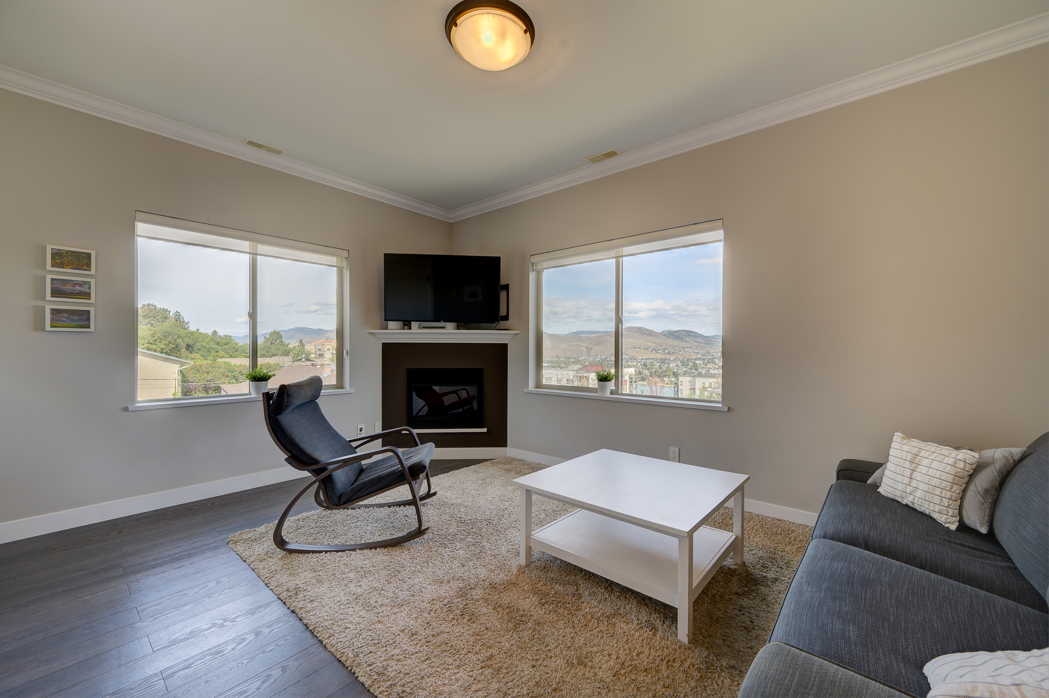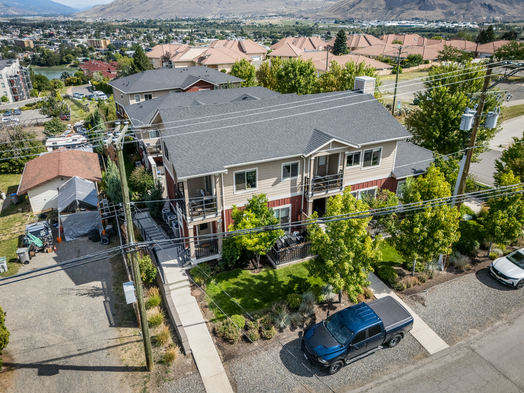 Top floor corner walk up style townhouse condo located minutes from TRU and city amenities. This home has it’s own private entry off of Fernie Road where there is extra parking in addition to the 2 assigned, covered parking spots.