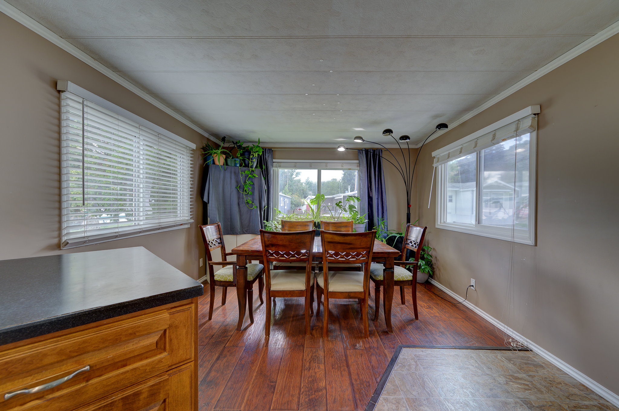 The bright open concept area off the mudroom is versatile and can be laid out a number of ways. Currently the kitchen and dining area span the whole front end of the unit however you could have a second living area and smaller kitchenette layout as well.