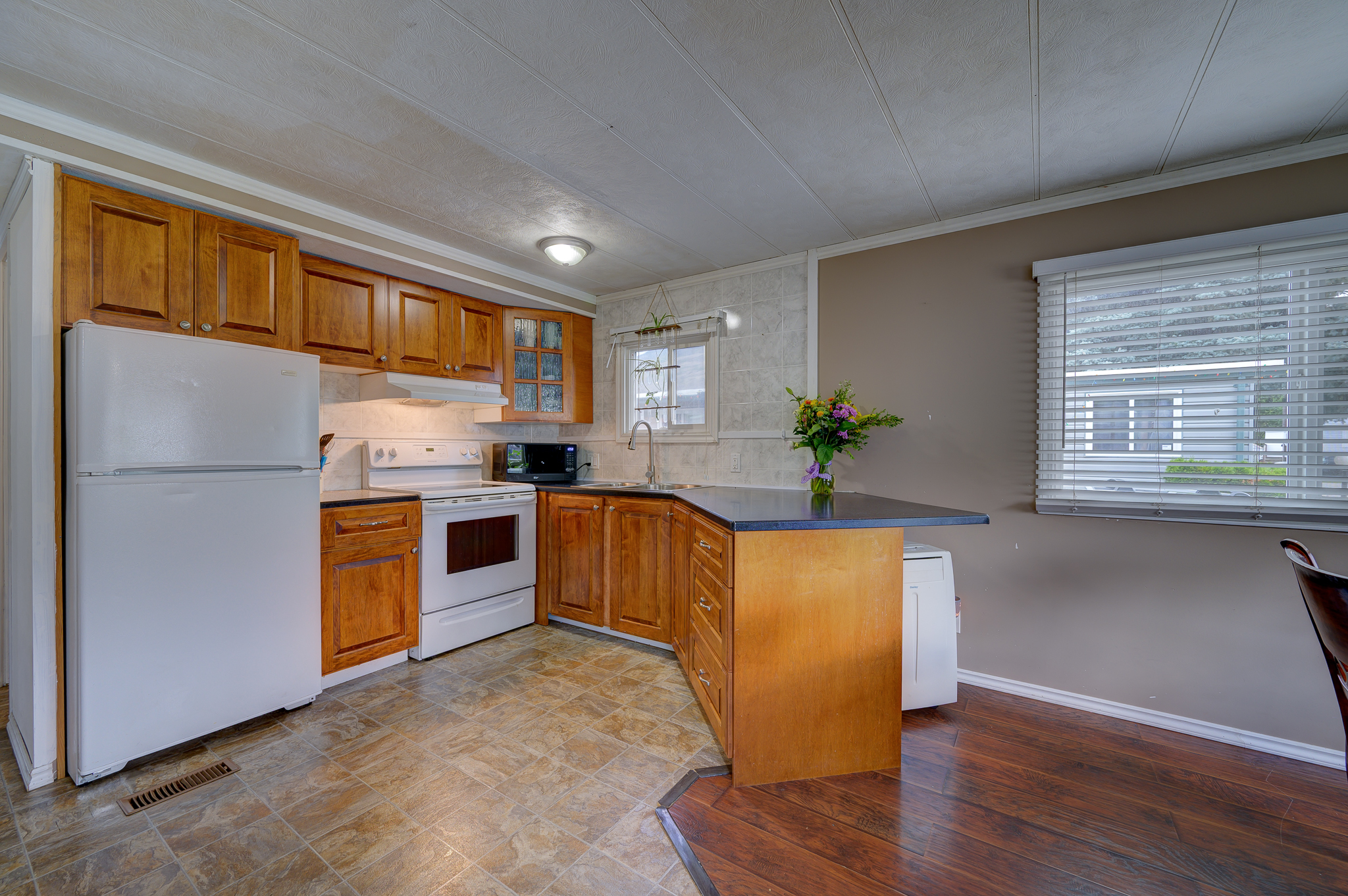 Nicely updated 3-bedroom mobile home in Westsyde. Entering from the front deck you are welcomed into a large mudroom which can offer the room for office space.