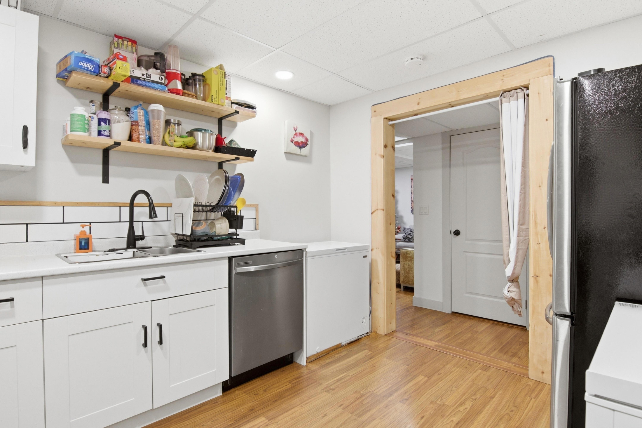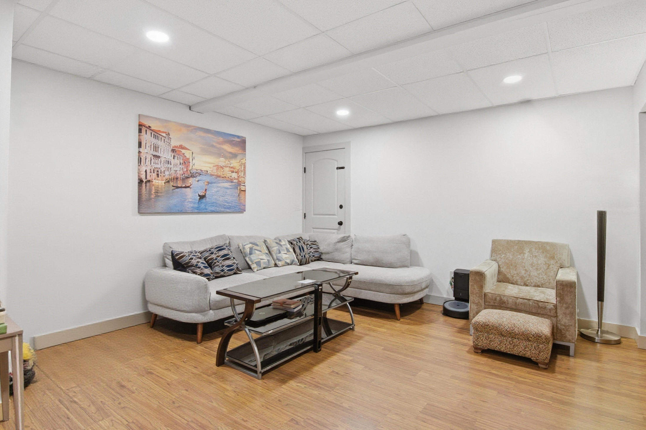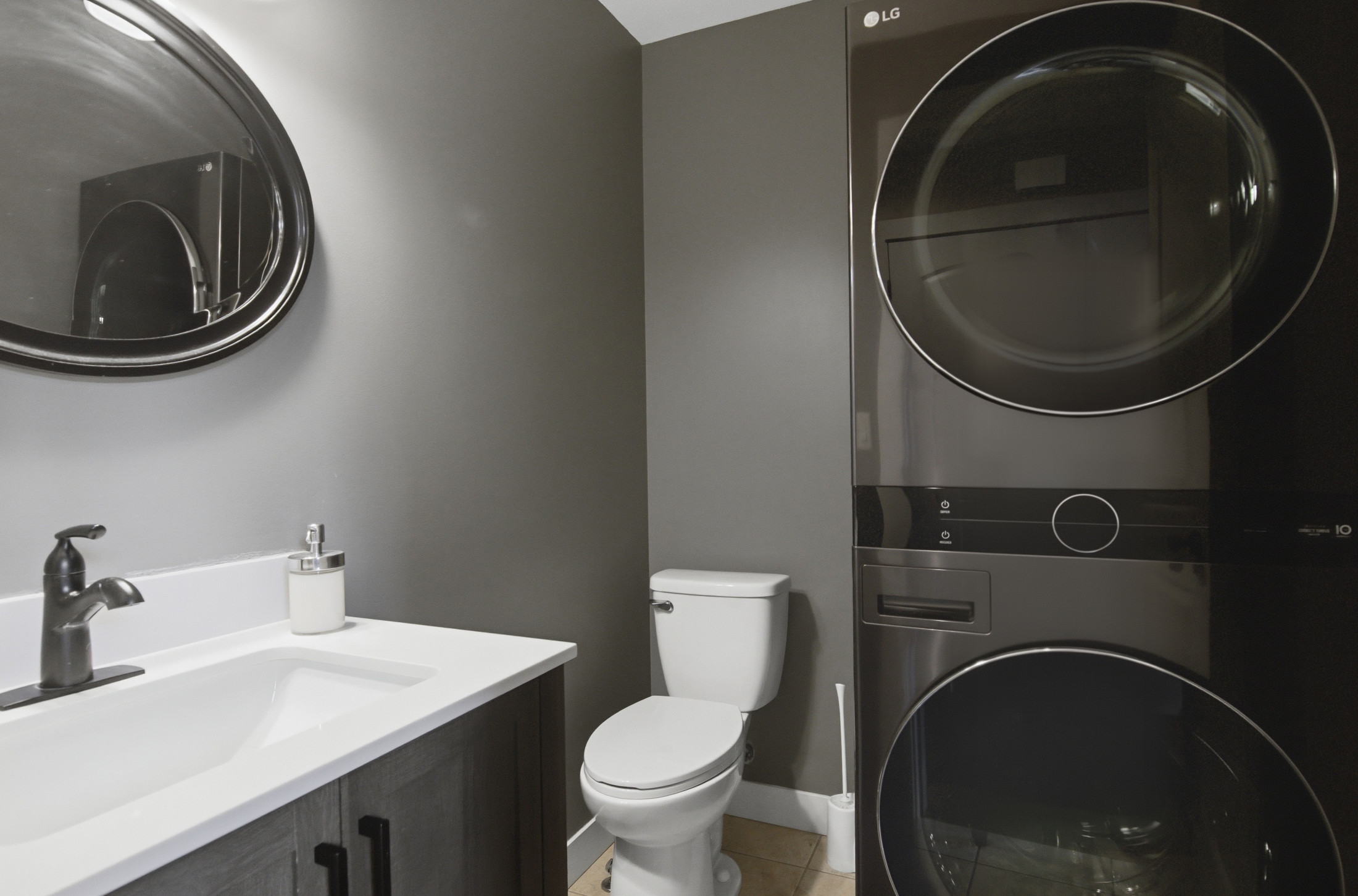 Enter into the main floor of this home and you’ll immediately notice the impressive 17-foot ceilings in the living room + large windows which bring in tons of natural light. The living room opens up to the kitchen and dining area which flows together effortlessly & is great for entertaining.