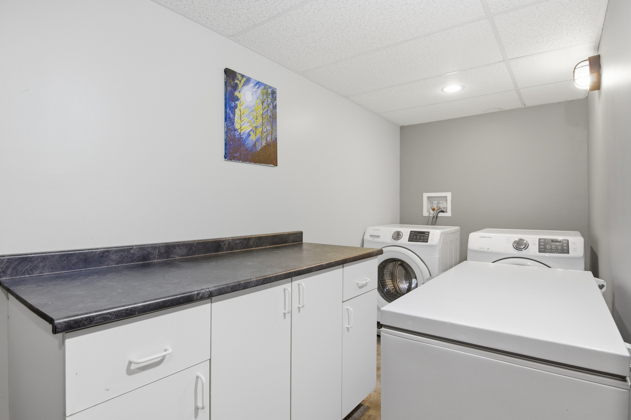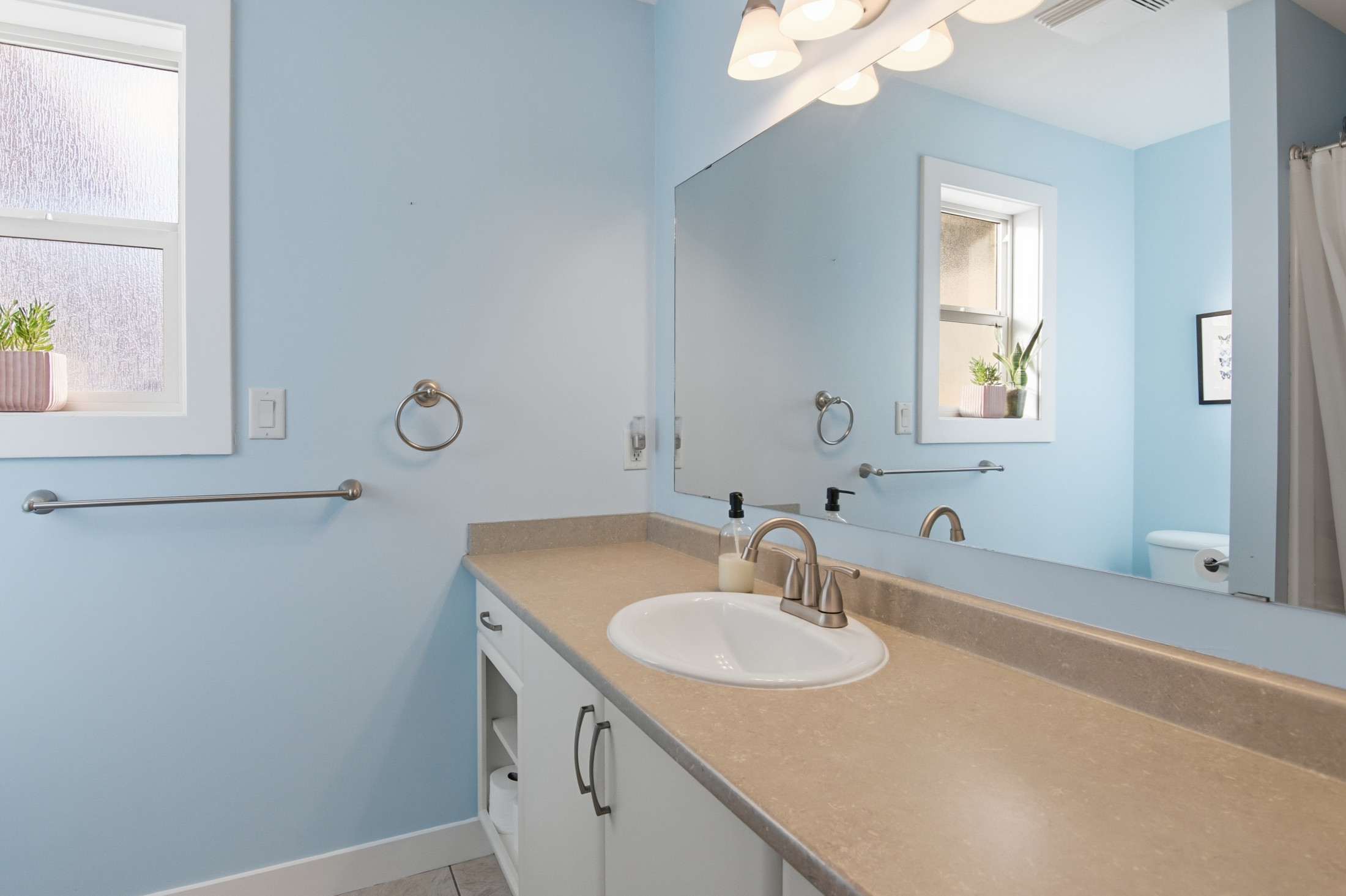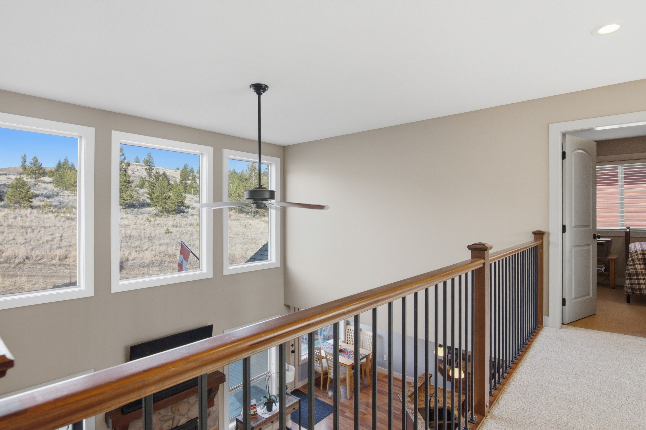 The main floor has 2 bedrooms including a large primary bedroom with views of the park, 3pc ensuite bathroom, & walk in closet + there is an additional bedroom/office by the front door. The main floor also has a laundry room in the 2pc guest bathroom. The upper-level features 2 more bedrooms and a 4pc bathroom connected by a breezeway with great views of the outdoors.