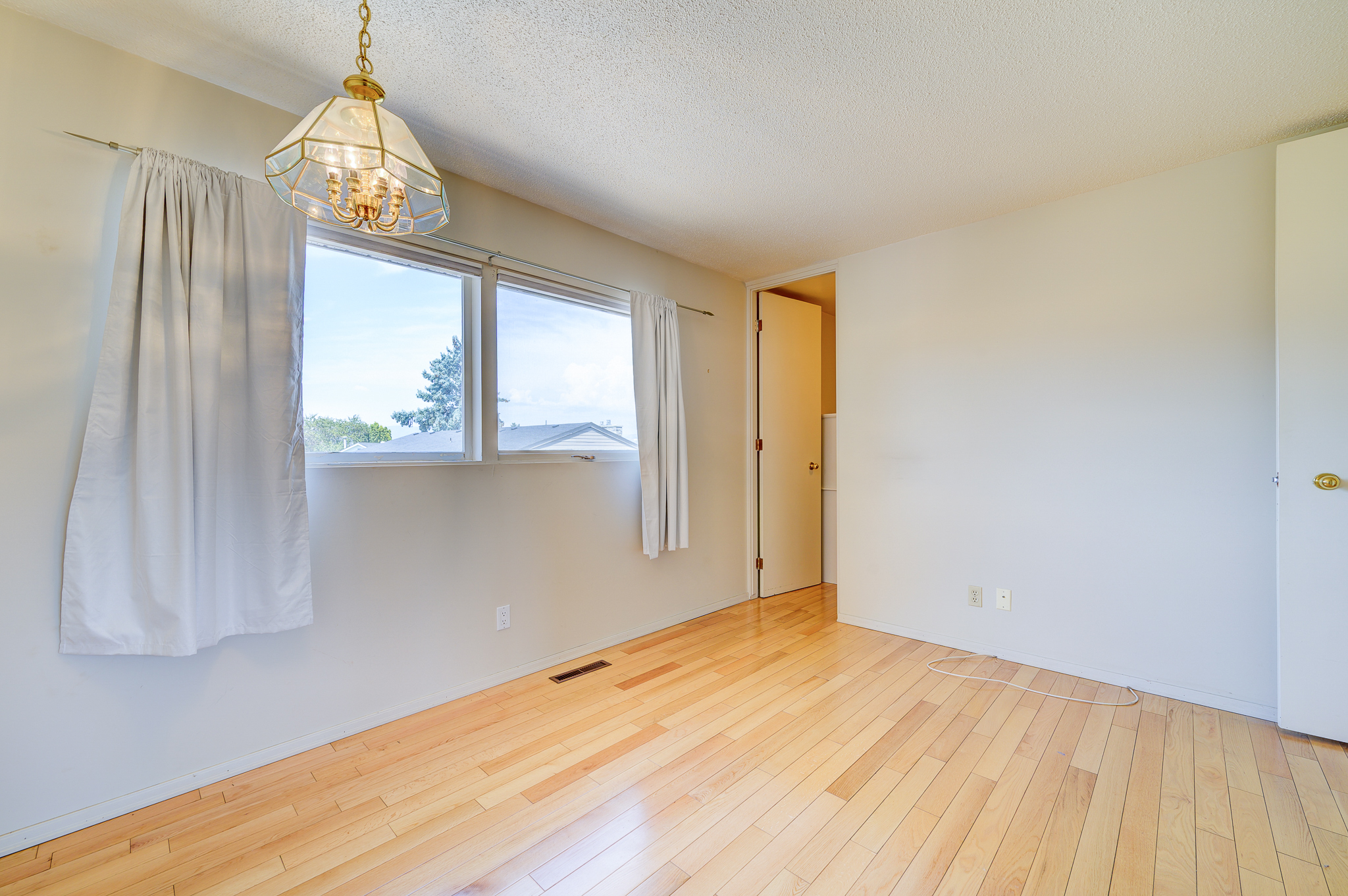 The main floor features three bedrooms, a four-piece main bathroom and a two-piece ensuite in the primary bedroom. Note two bedrooms were combined to one but sellers would reinstall the wall to create two separate bedrooms, all electrical and closets still in place.