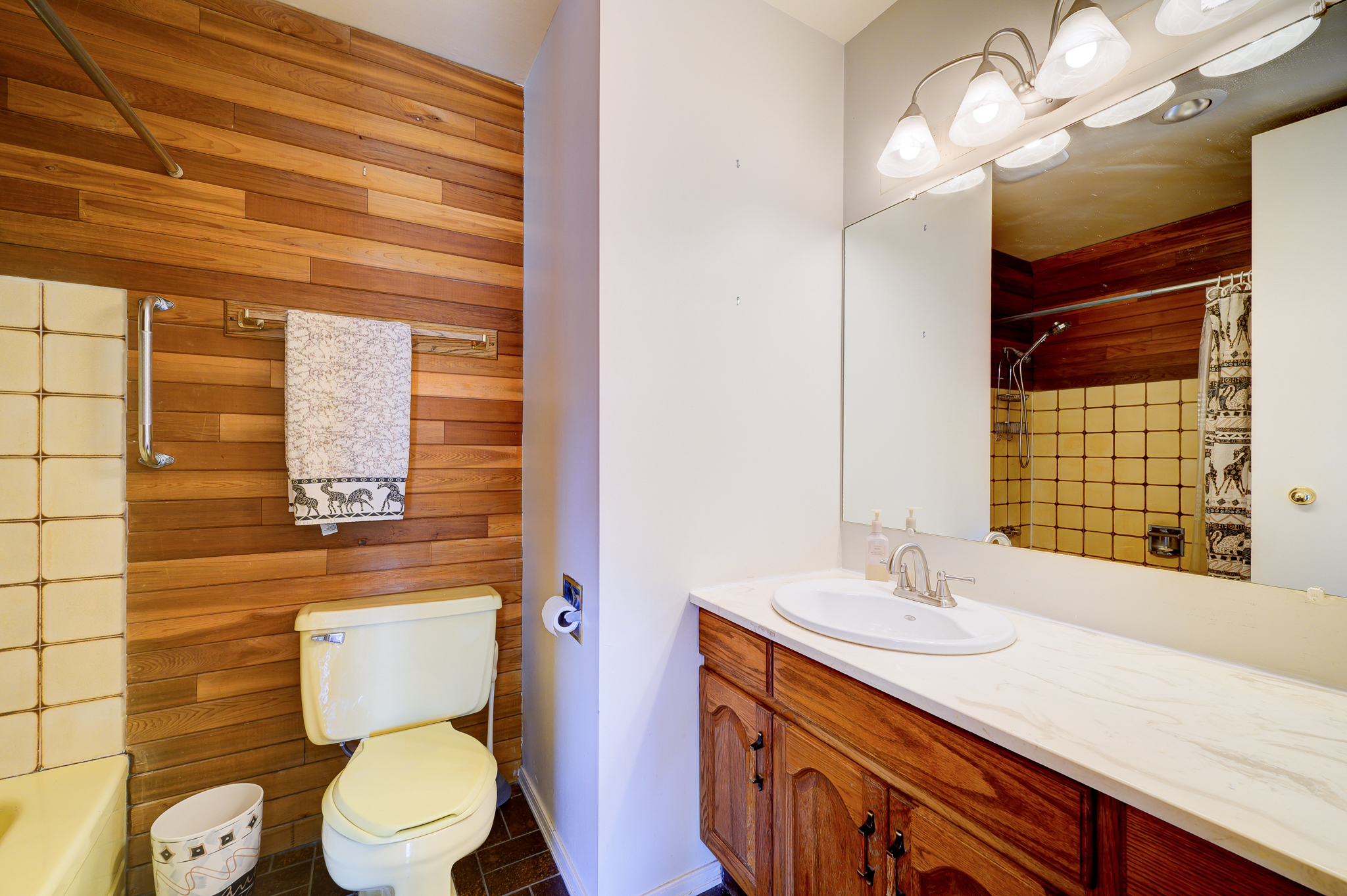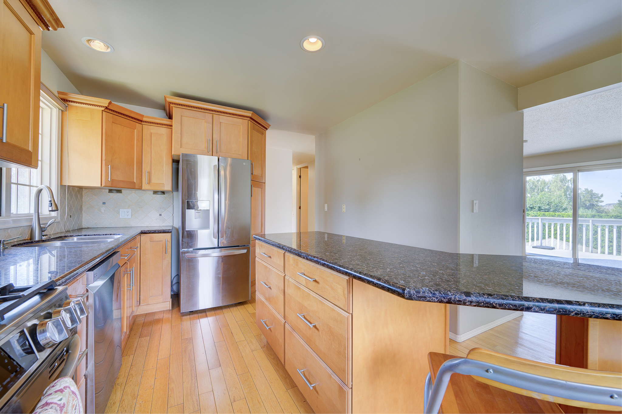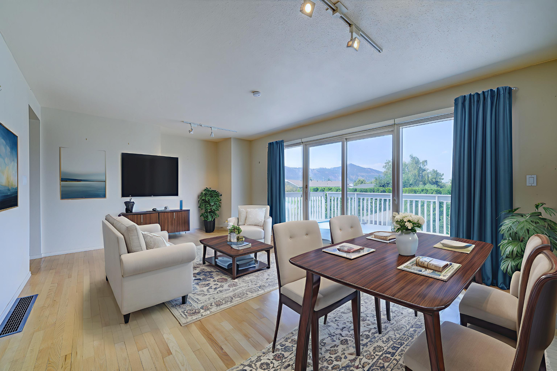 Walk through the main floor of this home and you will see so much potential! There is hardwood flooring running throughout the main floor. The kitchen is updated with stone counters, stainless steel appliances including a gas range and lots of cabinet space. The kitchen flows through to the living and dining room space which have lots of windows for natural light and a sliding glass door leading to the large patio with stair access to the yard.