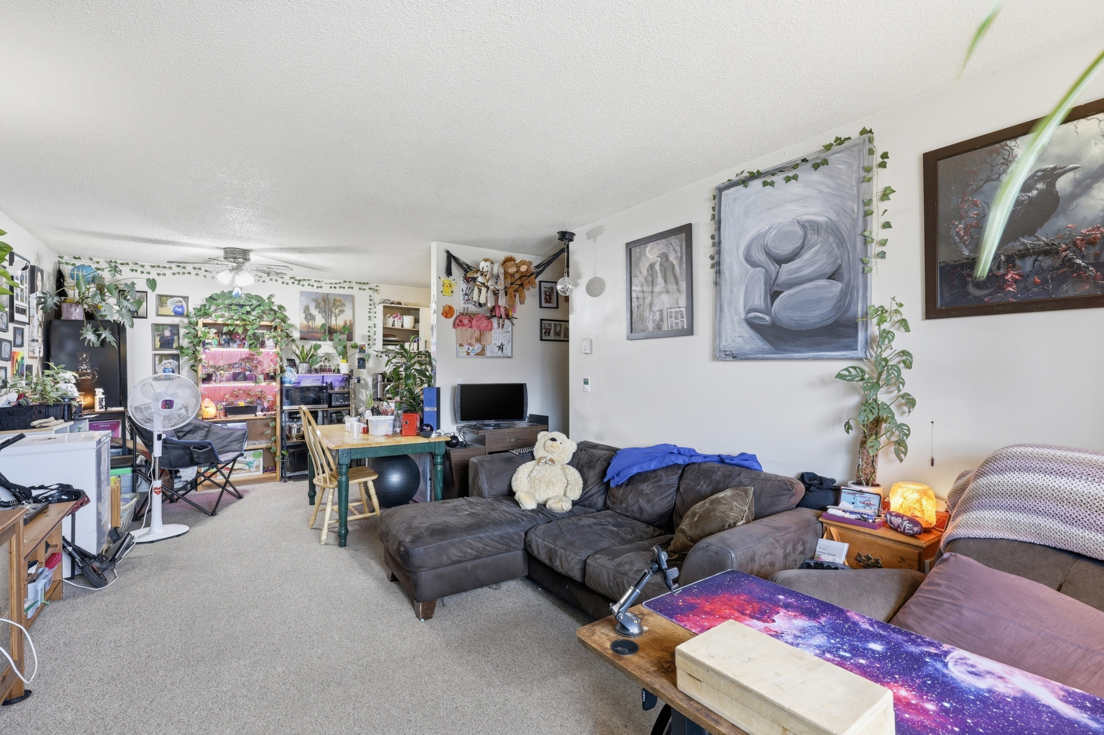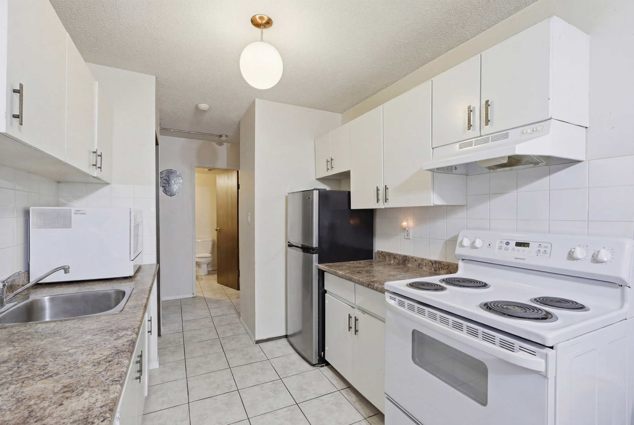 The galley-style kitchen offers ample prep space, plenty of cabinetry, and a convenient pantry. The dining area opens into the living room, which has great natural light. Outside, a large private deck to enjoy the morning sun on the east facing deck. This home also features two generously sized bedrooms and an oversized 4 piece bathroom with an updated vanity.