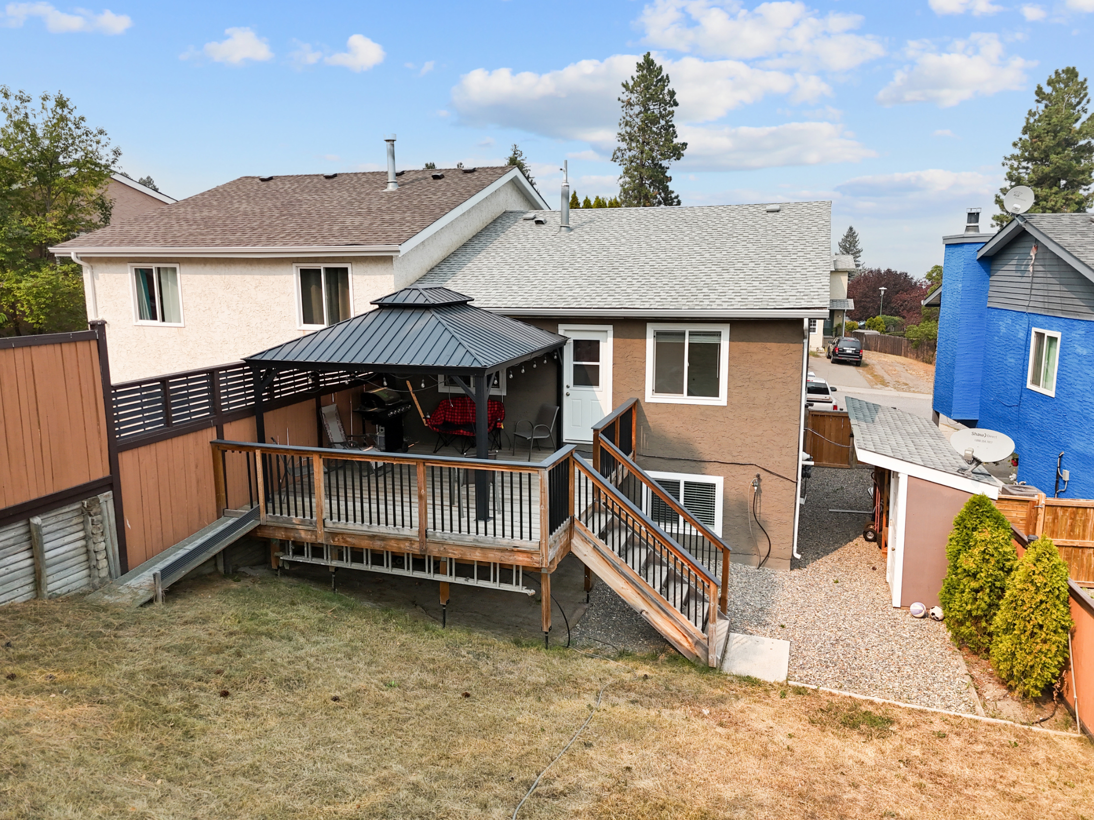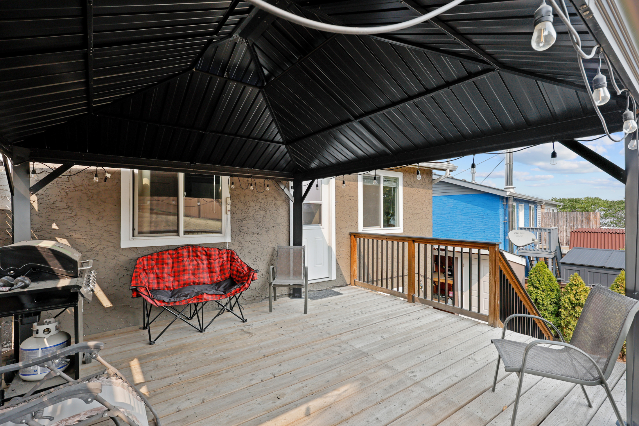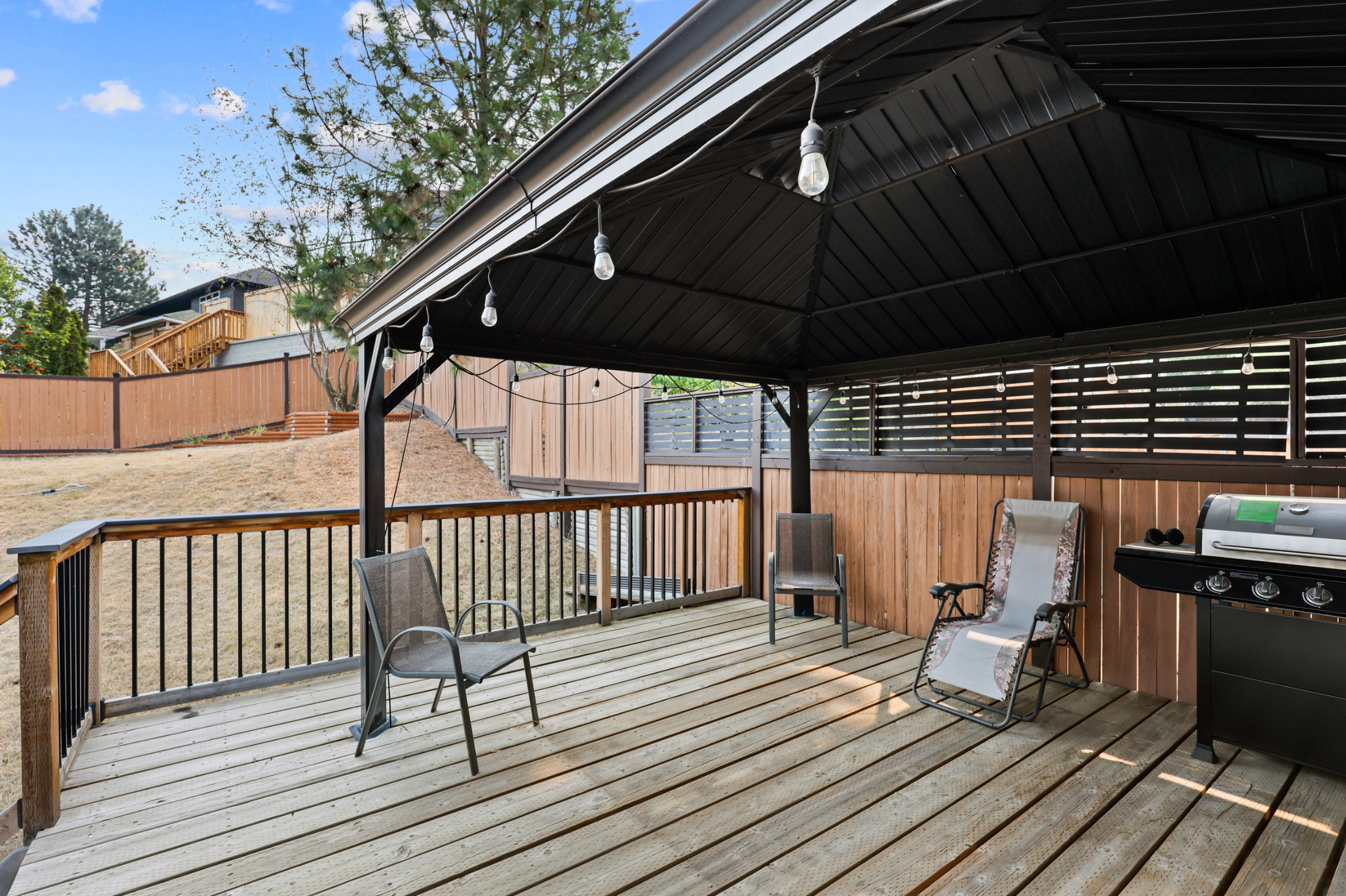 There is direct access to the back yard which features a nice sized patio, gazebo and fenced yard. The yard is a great space for gatherings, kids and pets.