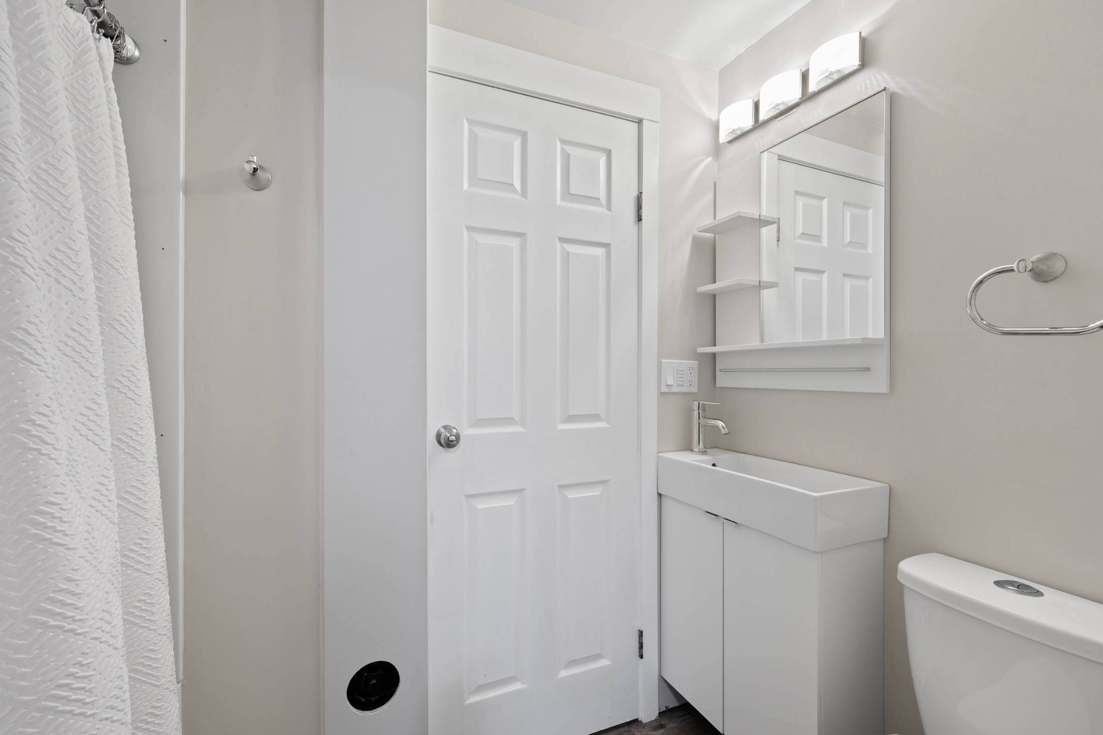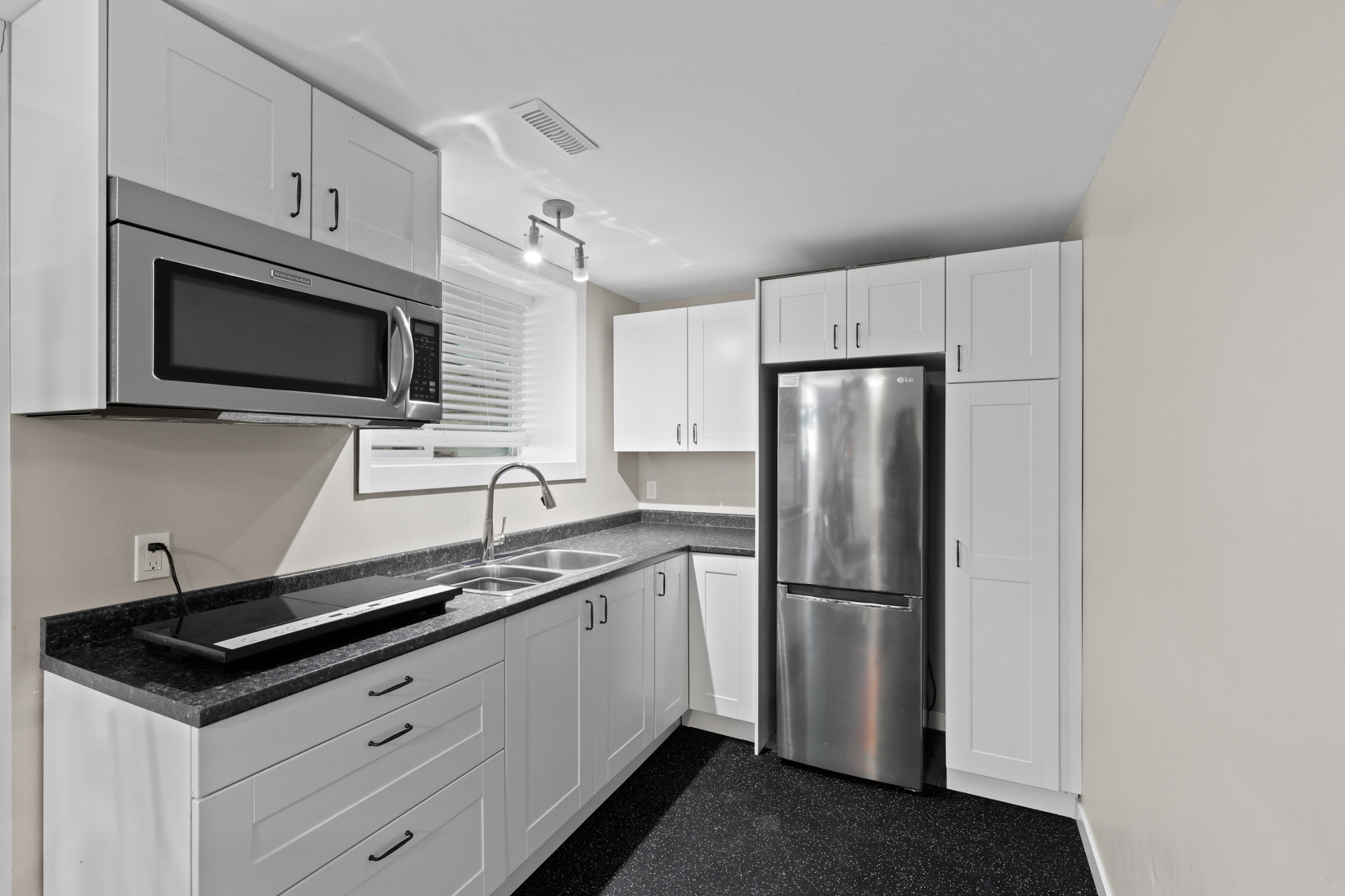 Enter through the main entry and you will find a self contained kitchenette with dining space. On the other side of the main entry there is a bedroom and a full 3 piece updated bathroom.