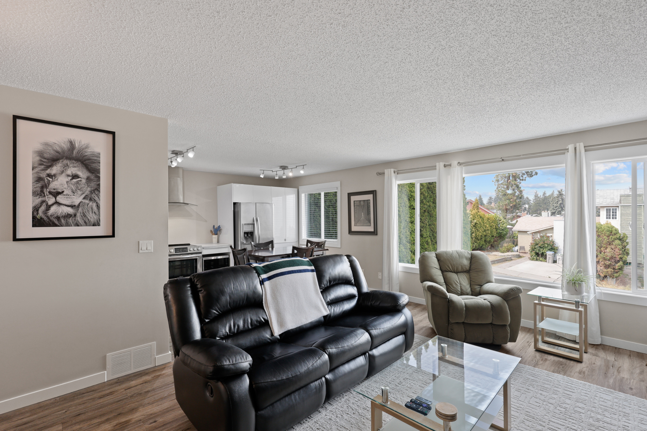 Ascend up to the main floor where you will find a great room open floor plan. There is a nicely renovated kitchen, eat in dining space and large living room space with tons of windows for natural light and to take in the beautiful views. There are 3 good sized bedrooms on the main floor and an updated 4 piece bathroom.