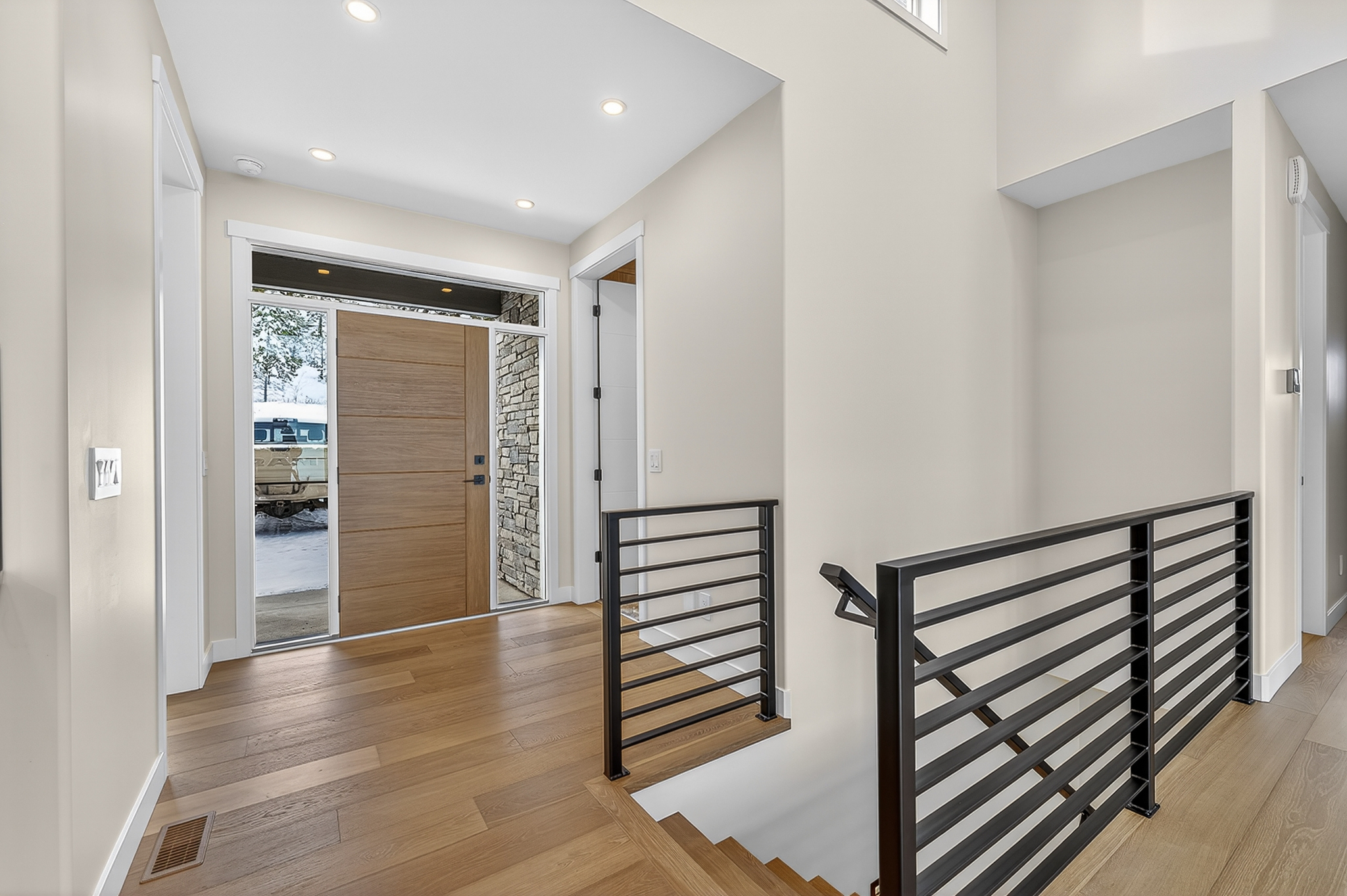 Walk through the main door of this home and you will find beautiful sight lines straight through the large picture windows taking in the city, river and valley views. There is engineered hardwood throughout most of the main floor.