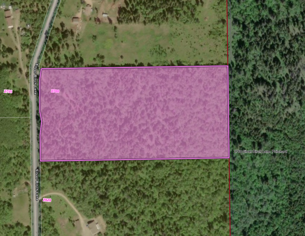 Great building opportunity on a large 19.6 acre rectangular parcel in Pritchard. Lots of possibilities abound on this AF-1 zoned lot with many trees and great privacy. This relatively flat lot has numerous spots to accomodate your next dream home and shop, horse property, or hobby farm. Very private, yet only 40 minutes to downtown Kamloops and just 10 minutes to Highway #1 and the Pritchard Store. Easy to develop with power at the road, partially roughed in driveway, and a wellhead on the property (buyer to verify water availability). Nice views from top end of the lot. Don't miss your chance to own one of few remaining acreage building lots.
