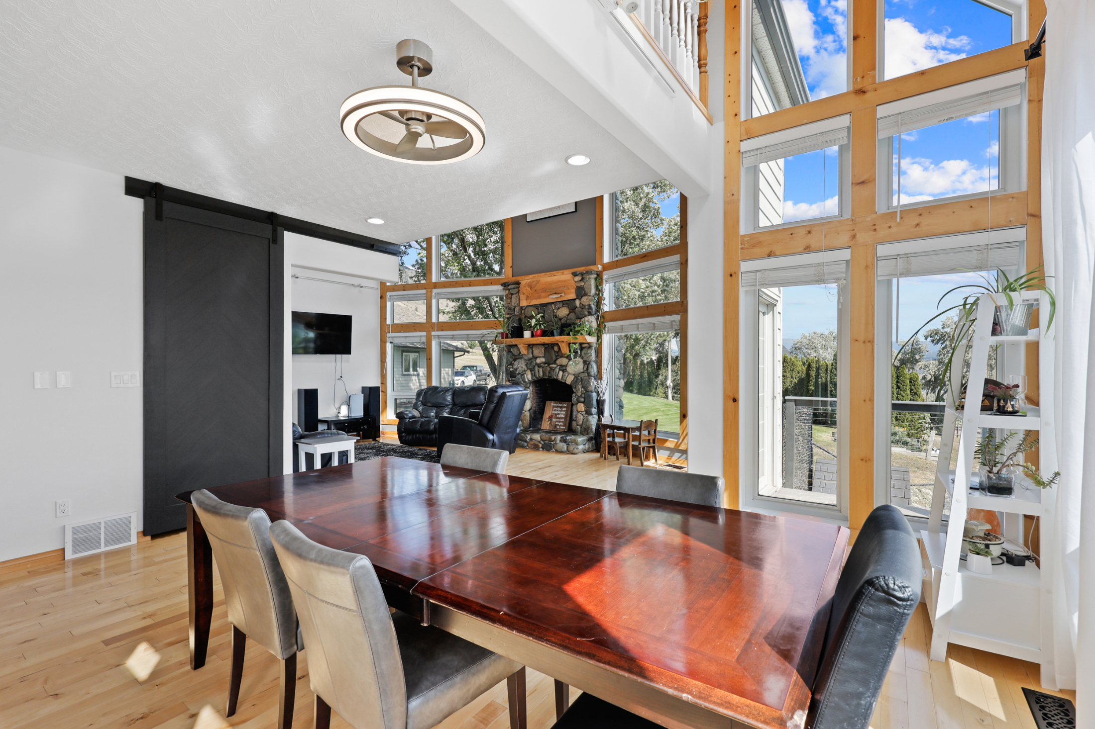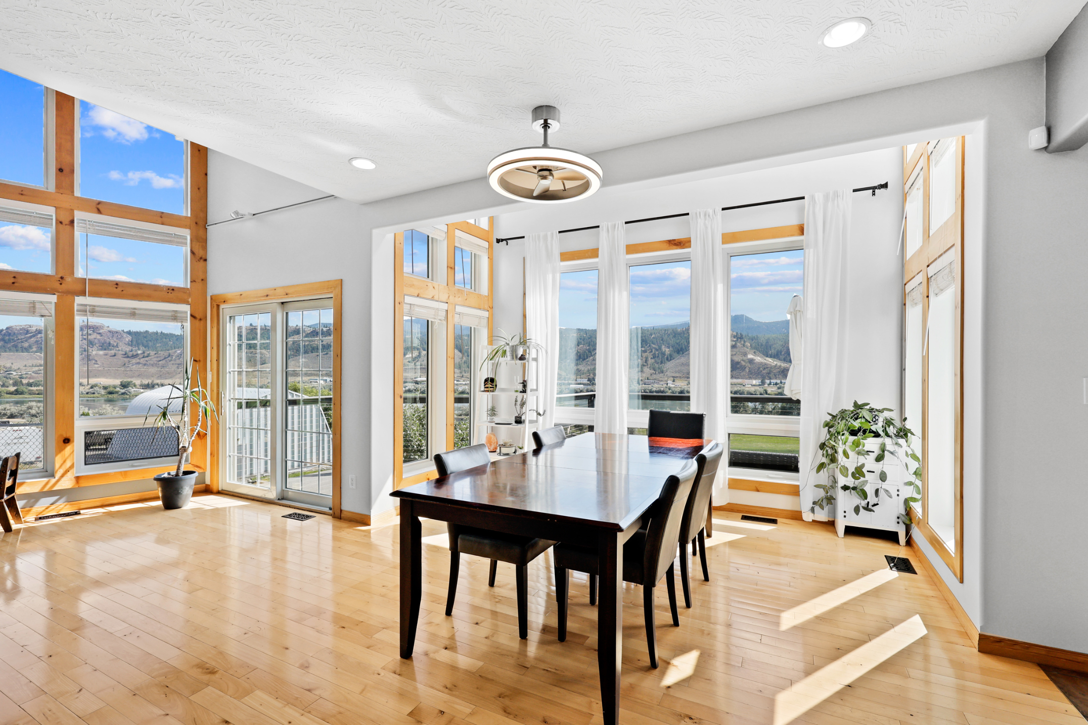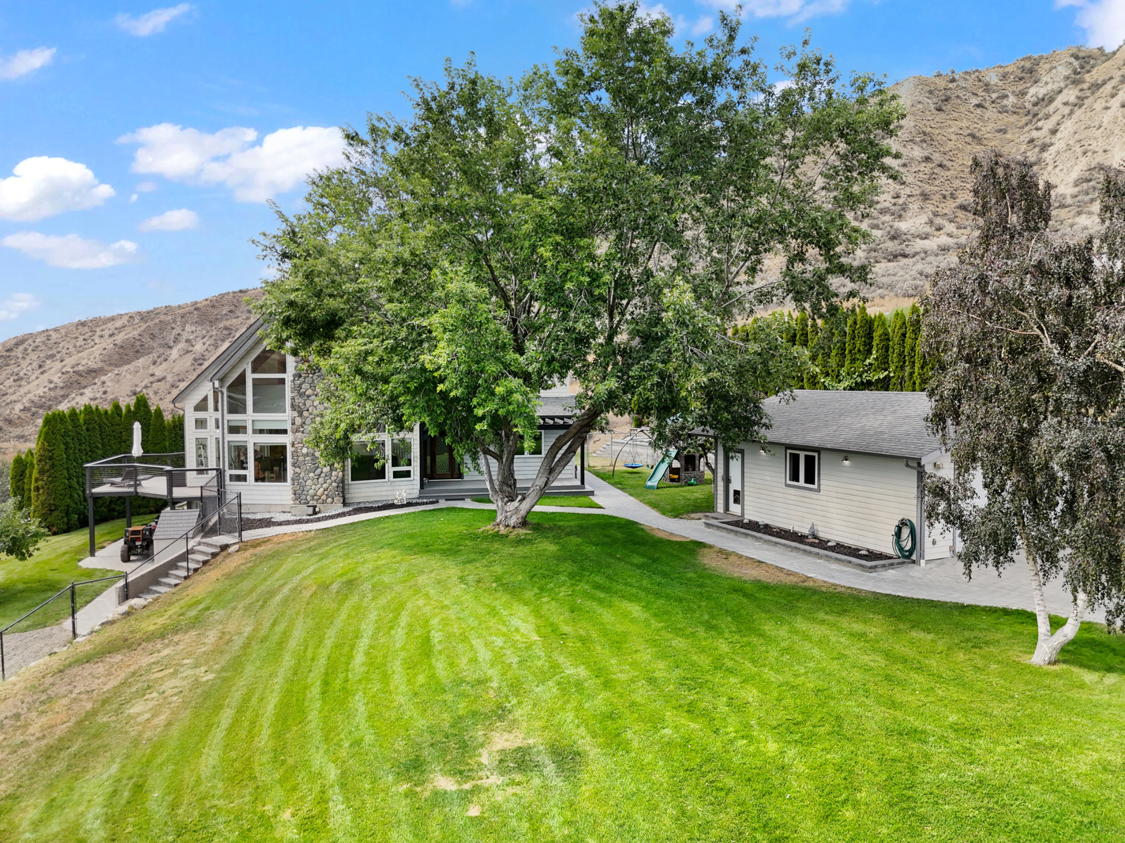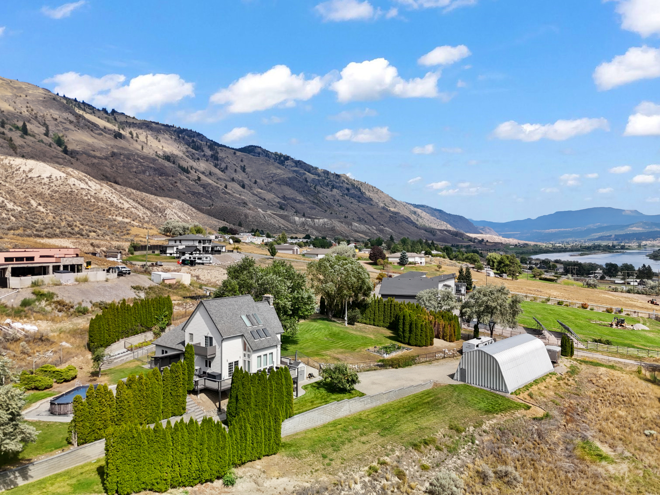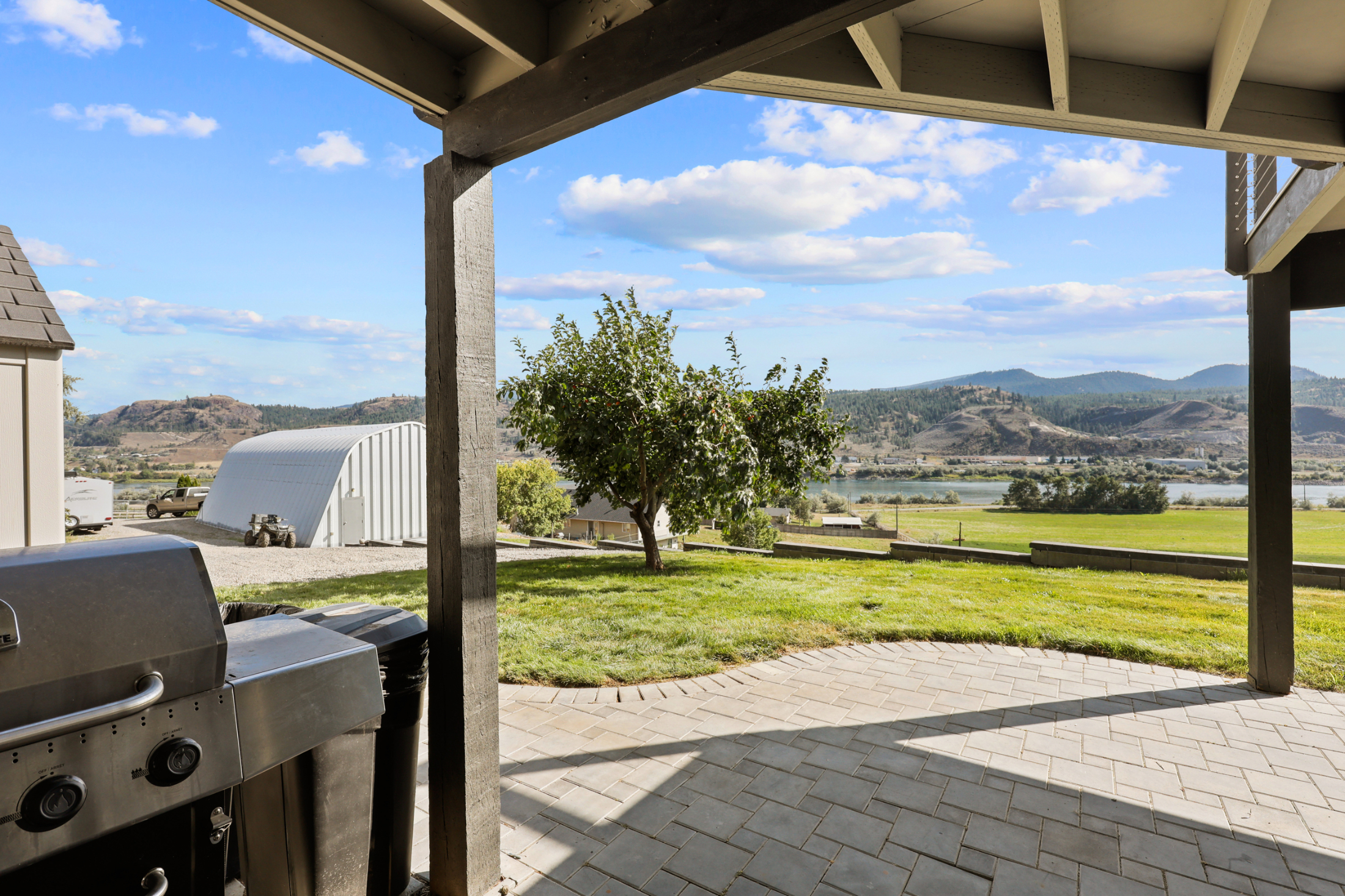 2.38 acre property with detached 24x28 shop and 30x60 Quonset hut plus gorgeous 3,300 square foot home featuring soaring vaulted ceilings to take in the beautiful river and valley views. Drive through the fully electric remote-controlled gate to the beautifully landscaped and developed lot. Walk past the detached shop to the main entry of the home with large front patio which leads to the main entrance of the home.