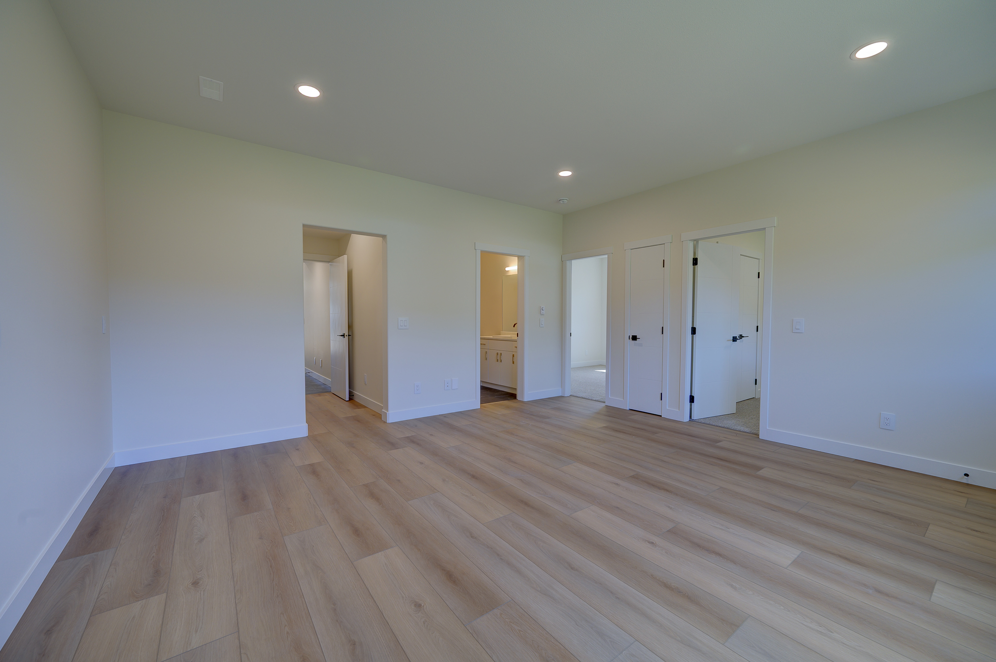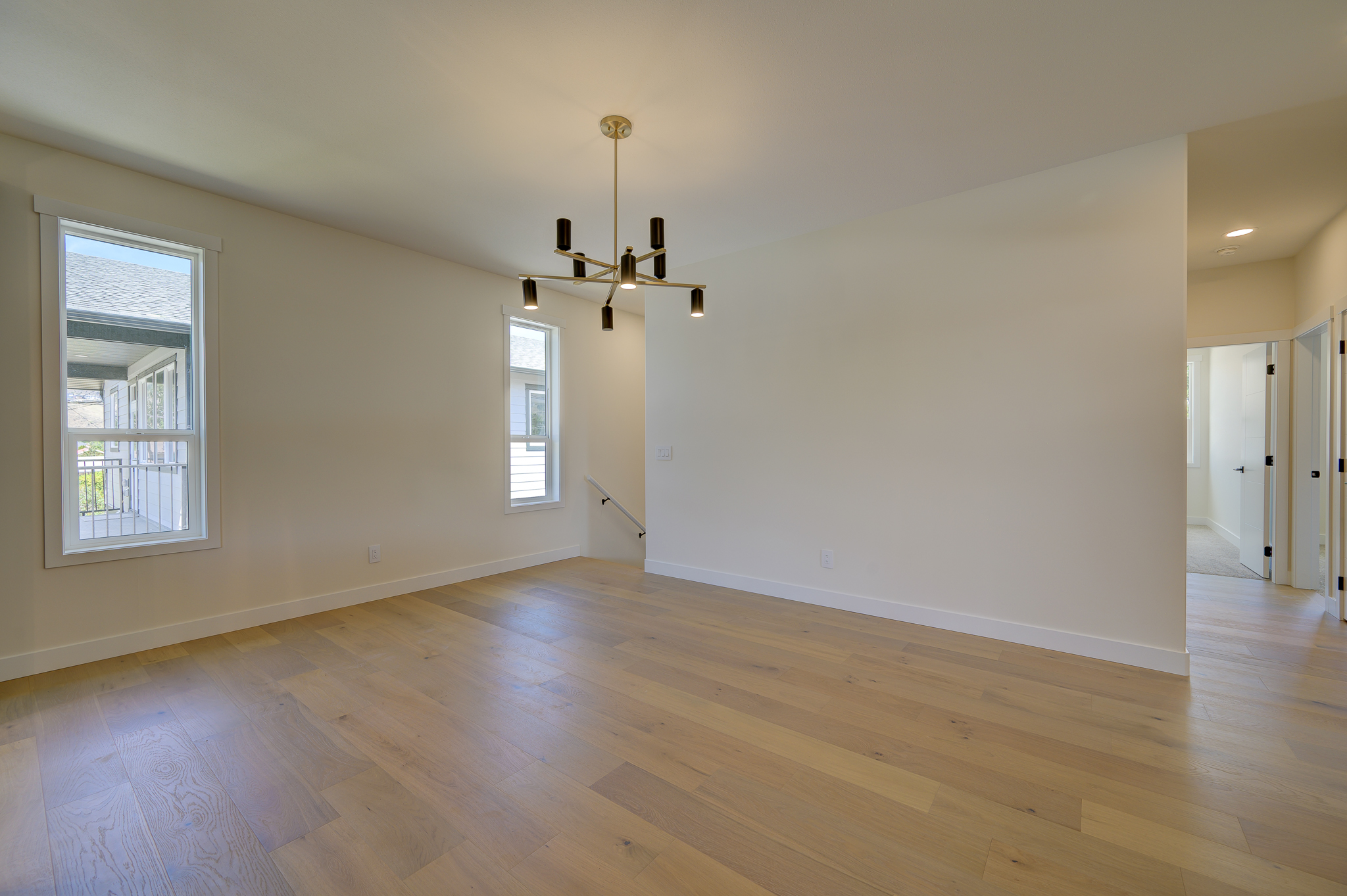 Enter through the main entry where you will find a closet and access to the nice sized 2 car garage. Ascend to the top floor where the open floor plan, high 9 foot ceilings, lots of windows and engineered hardwood throughout will impress. The large kitchen has tons of cabinetry, large island and quartz stone counters. The living room overlooks western views. Walk off of the living room to a large covered deck.