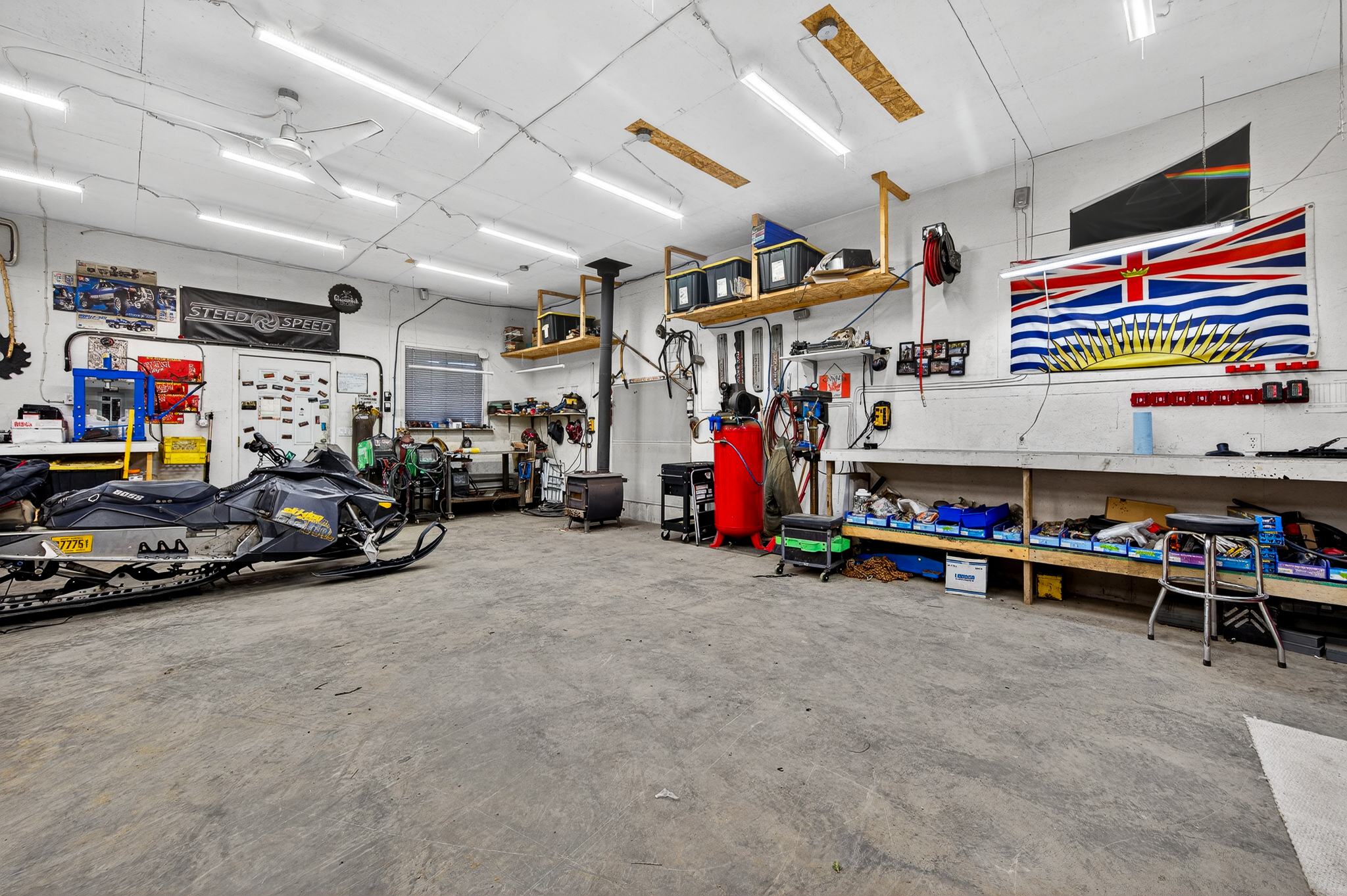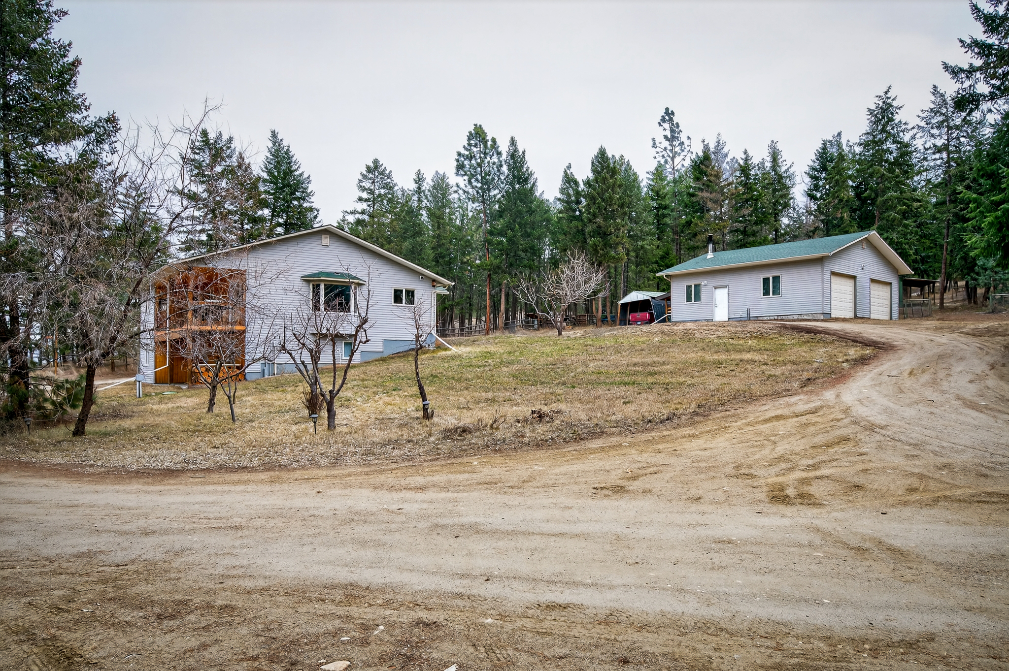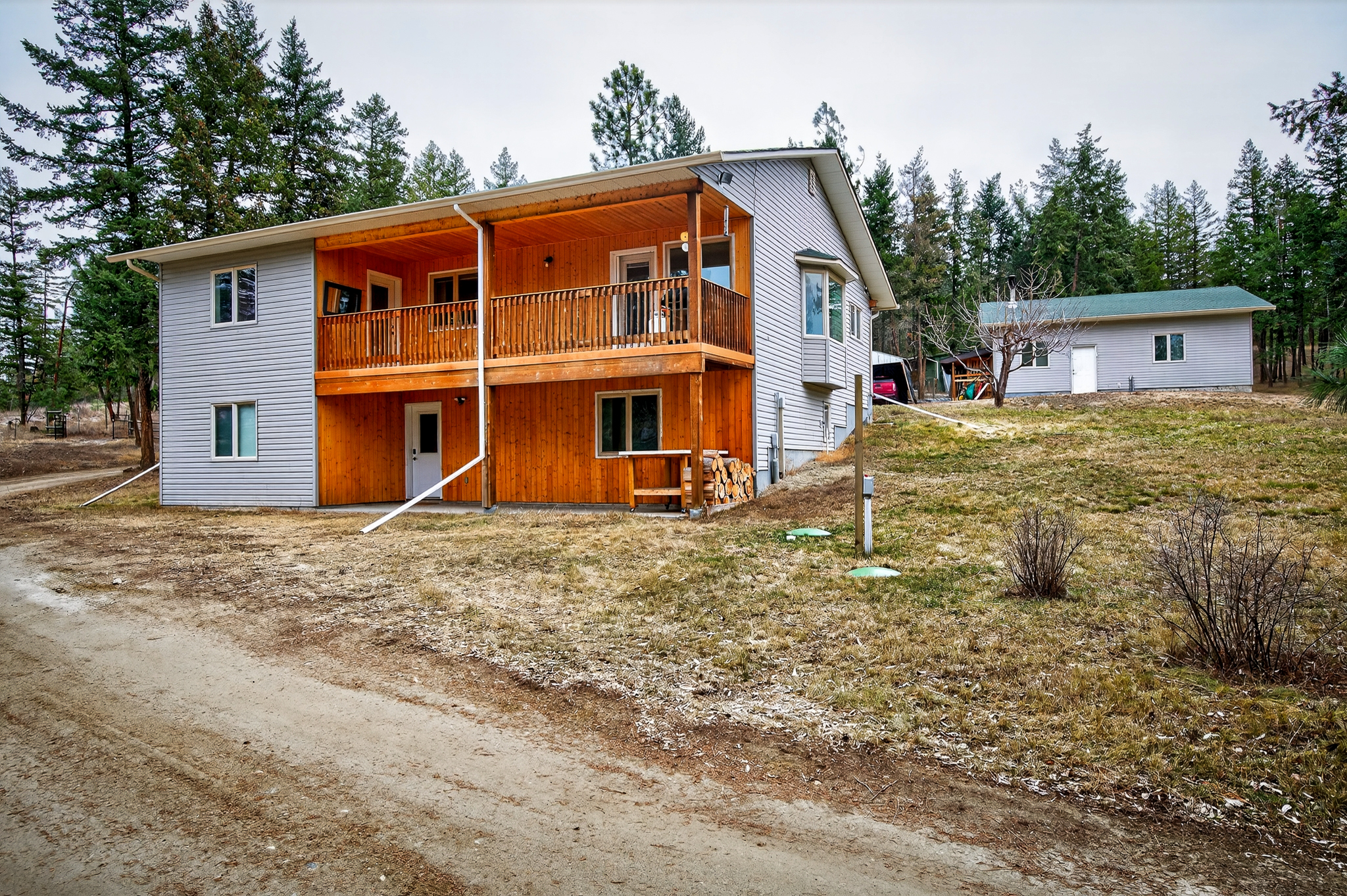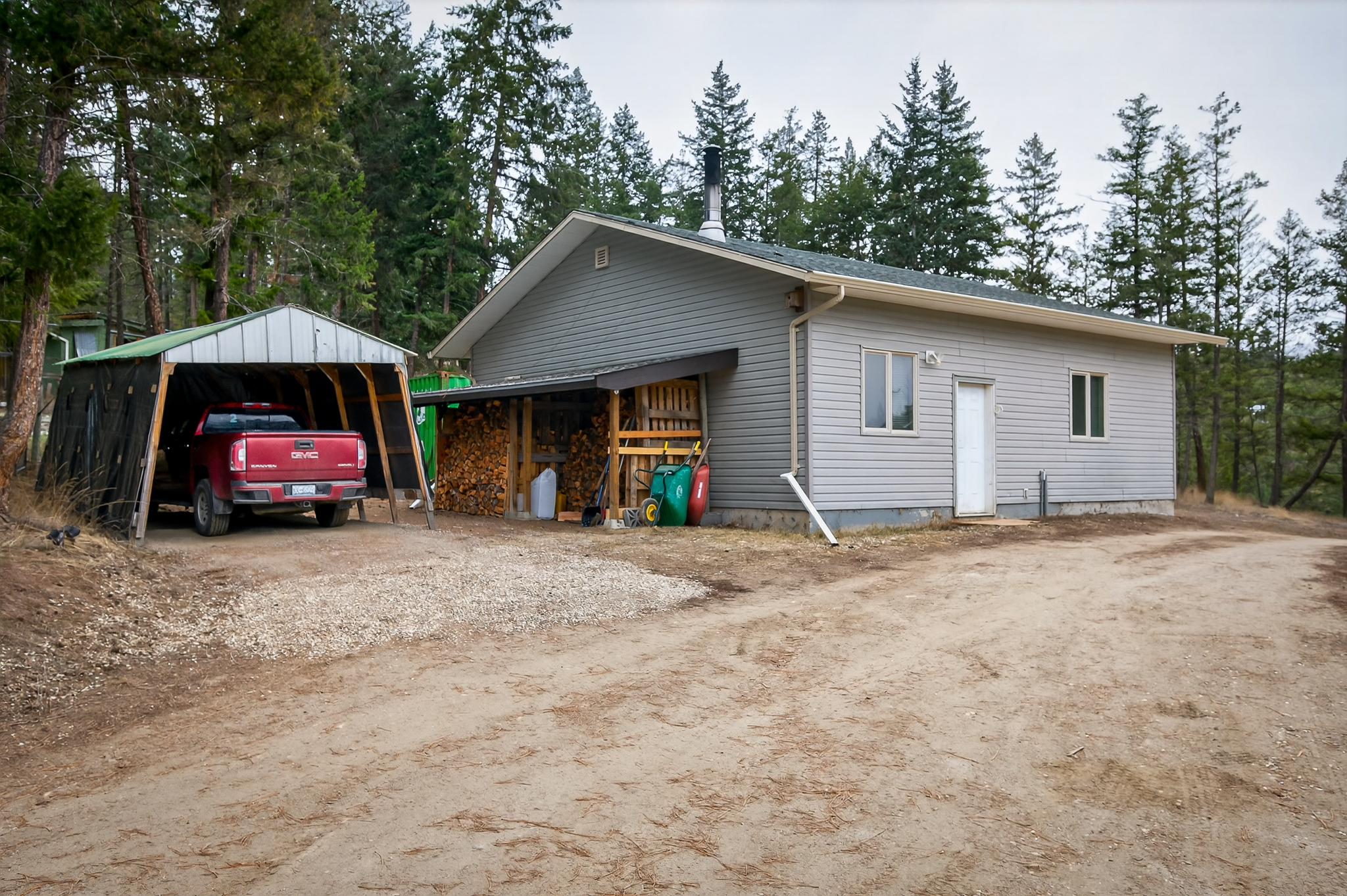At the top of the driveway you will find the home & shop located on a nice bench with easy access. The 2007 built home has level access & all of your living can be done on one level! The open great room plan has lots of windows for natural light, good sized living & dining room that walk out to a fully covered deck. The primary bedroom is off the main living space, which has an expansive 5pc ensuite with separate shower & tub. There’s an additional room which is perfect for a 2nd bedroom but also has the laundry set up at this time. To finish off the main floor there’s a 2pc bath & a covered porch area making it a perfect wood storage area for the colder months.