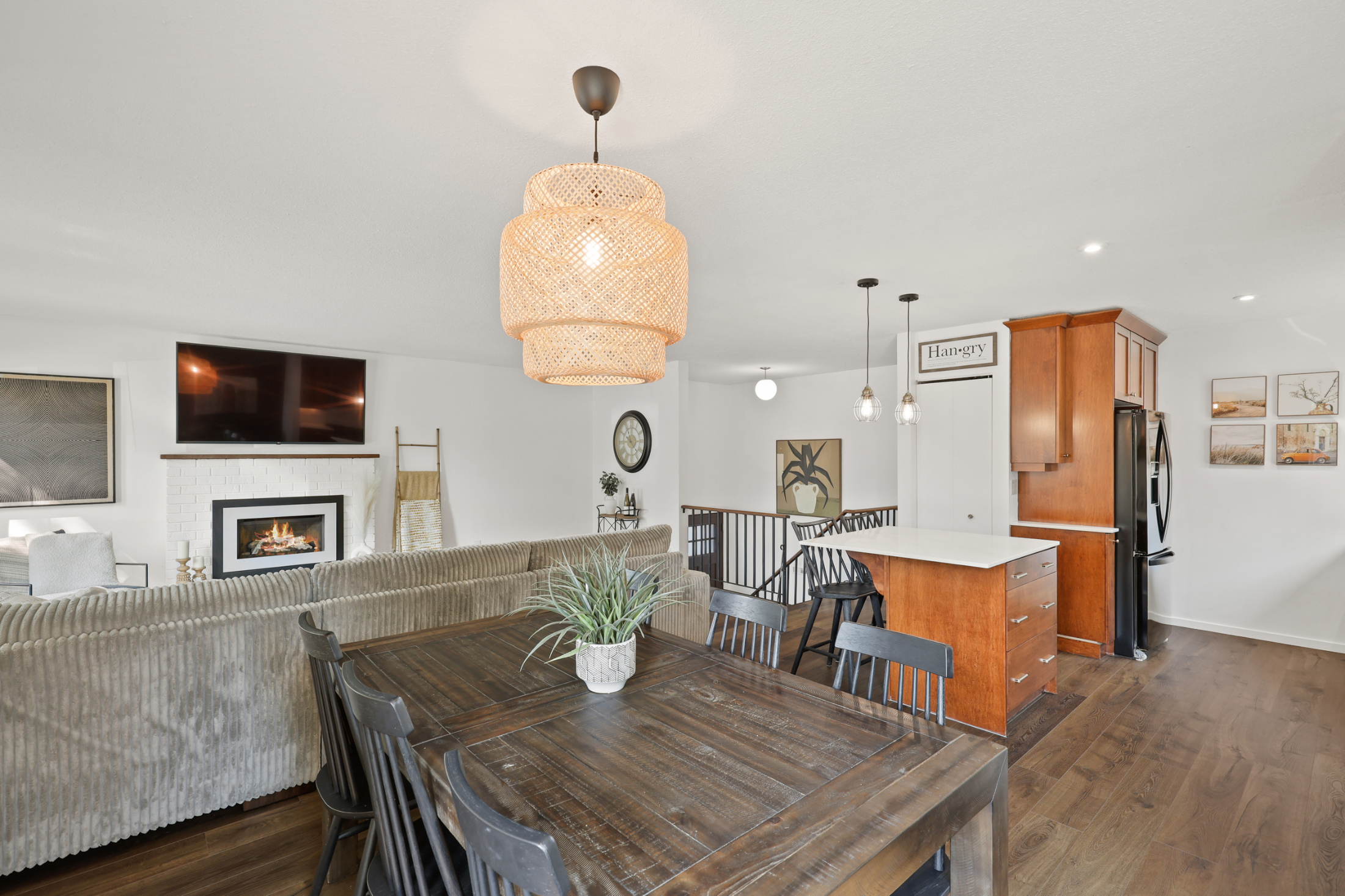 Every detail has been thoughtfully considered, making this property move-in ready from top to bottom. Step inside and you feel right at home. The bright, open-concept main floor showcases a designer kitchen with quartz countertops, a stylish new backsplash, champagne hardware, and a rich vinyl plank flooring that flows throughout. Freshly painted walls in every room add warmth and a welcoming touch.
