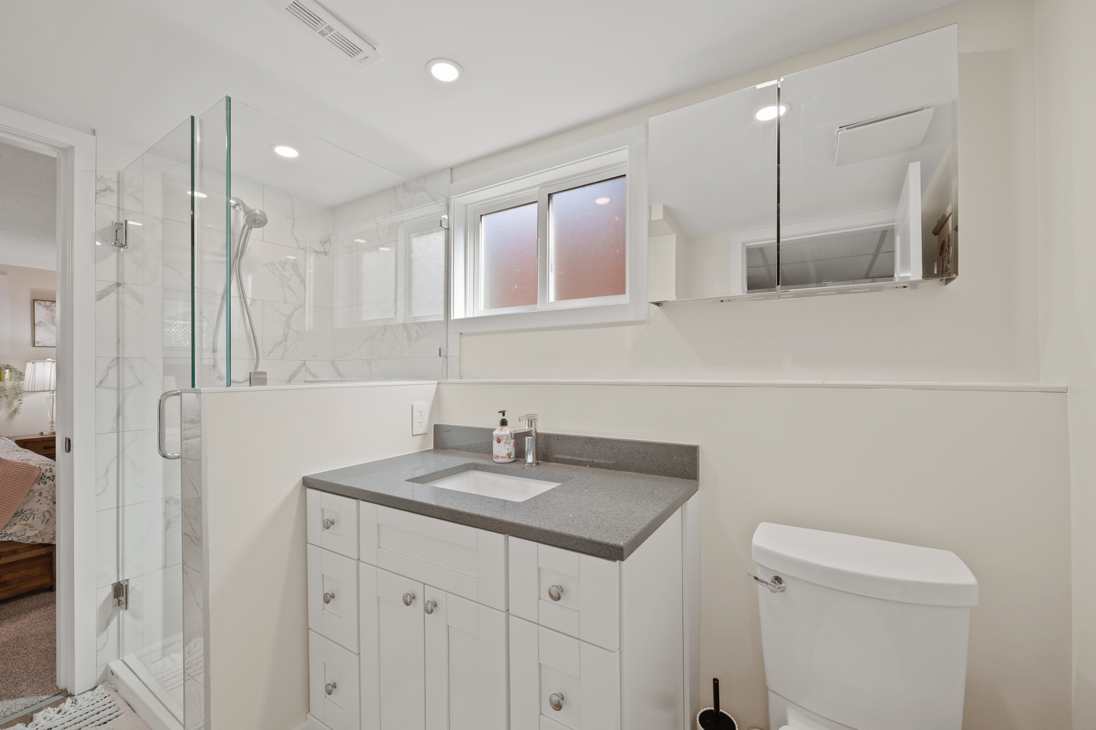 The lower-level suite is perfect for extended family, guests, or income potential, featuring a separate entrance, patio, galley kitchen, spacious bedroom with a walk-through updated bathroom, and a generously sized living area.