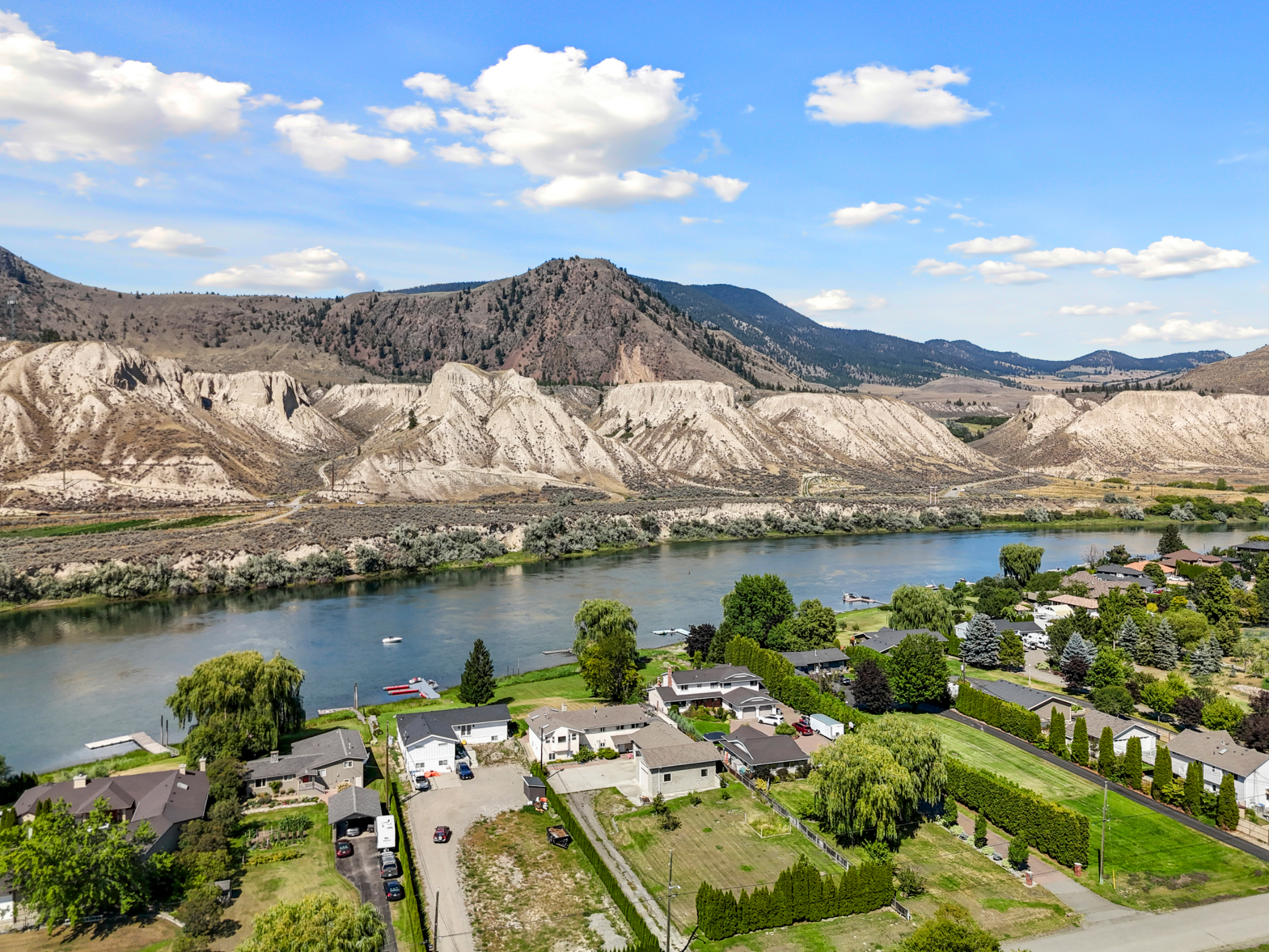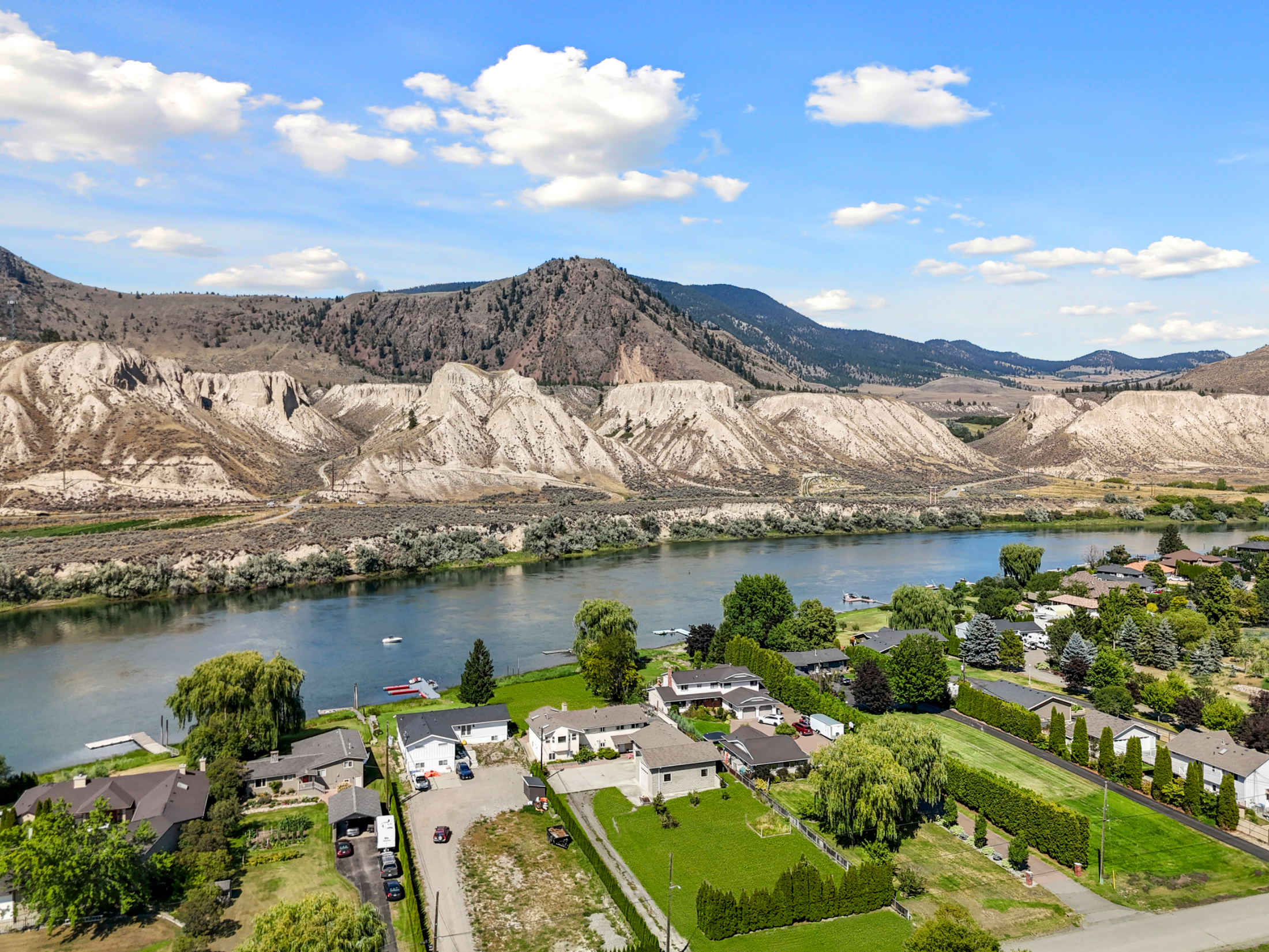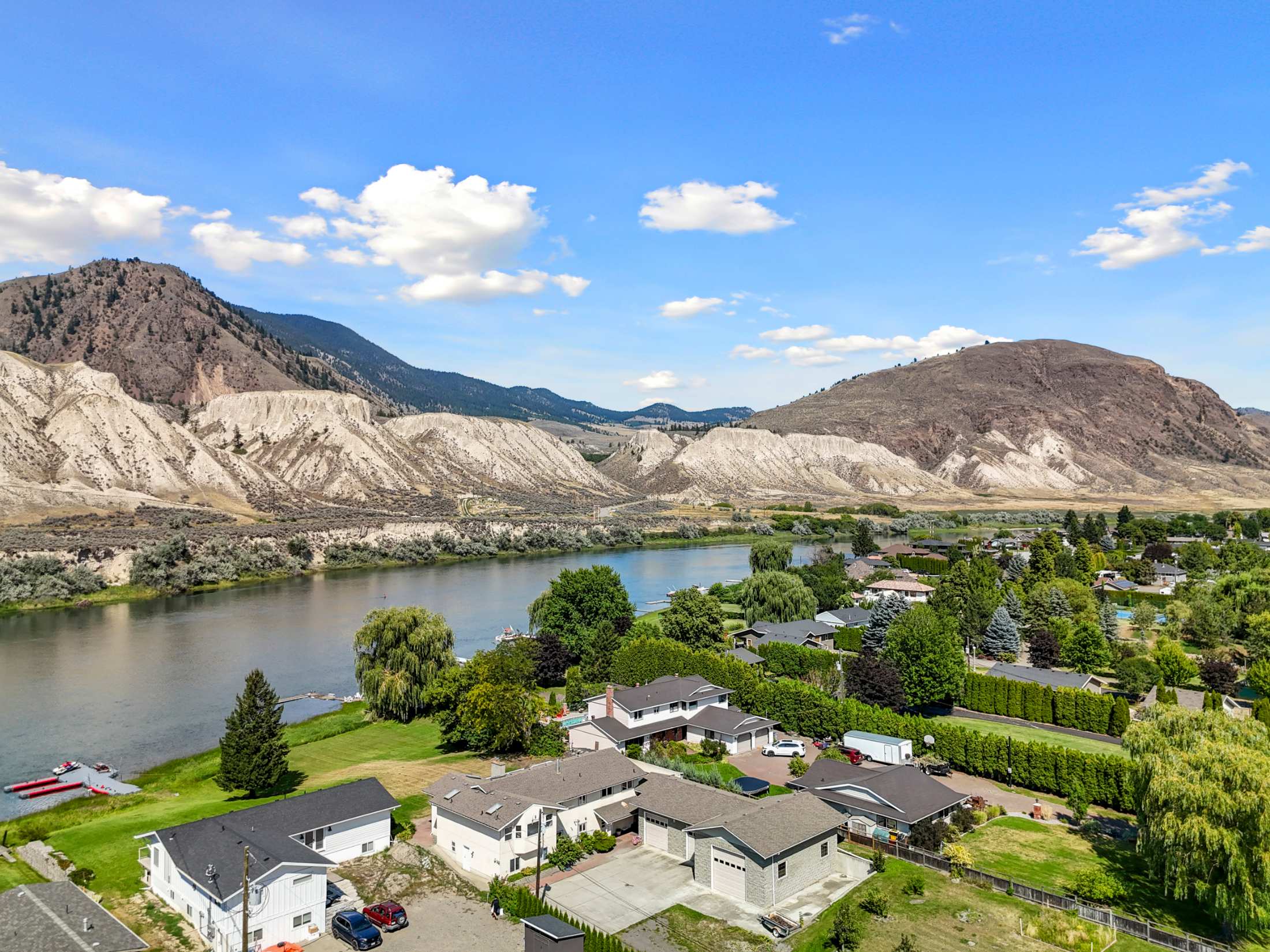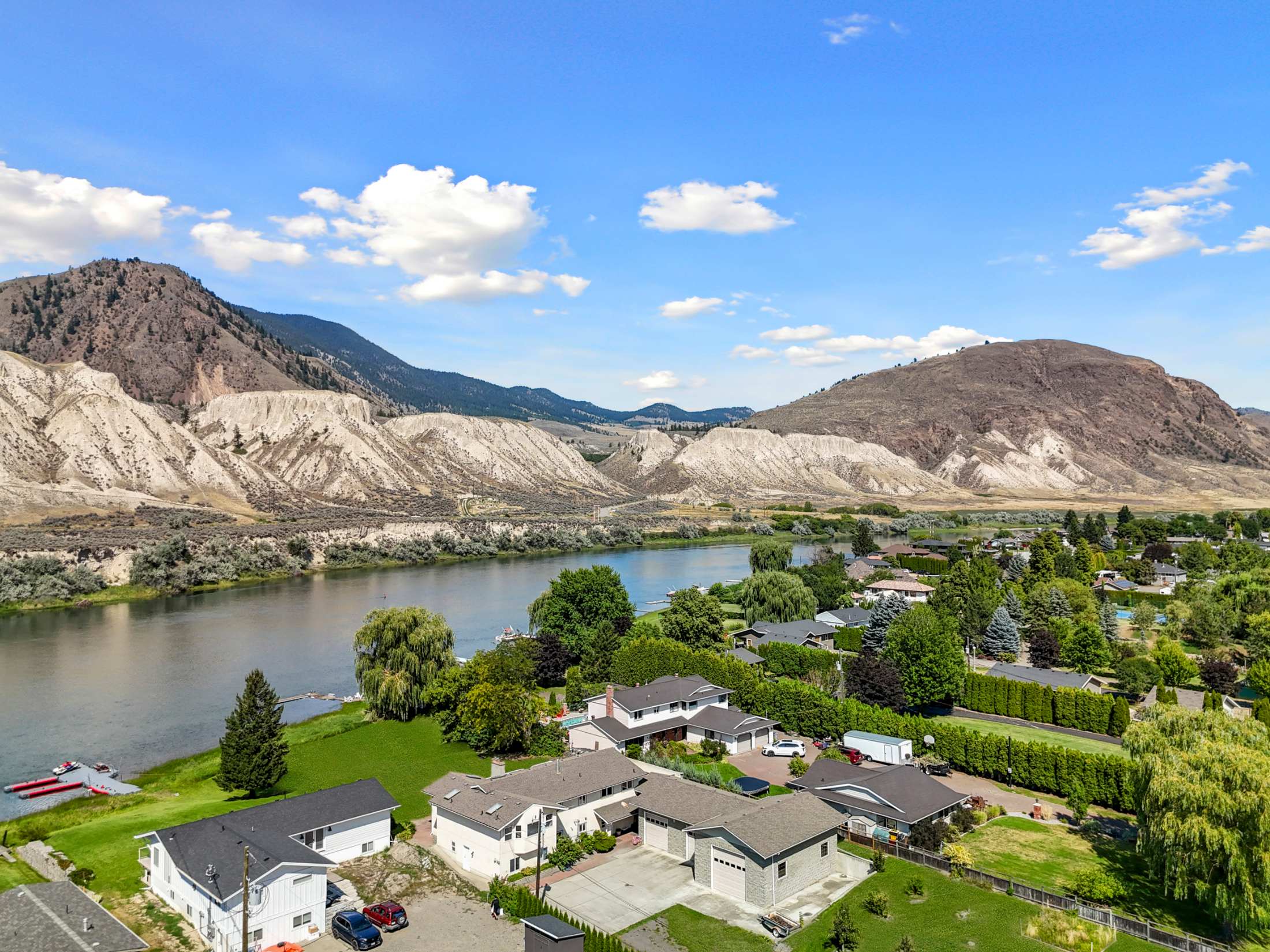 Stunning ¾ acre Dallas South Thompson Riverfront property with a spacious home featuring a HUGE oversized 3 car garage and subdivision potential. Upon driving up to this property you will find a large private driveway alongside a grassy space with numerous fruit trees and room for development, new house build, carriage house? (see city of Kamloops).