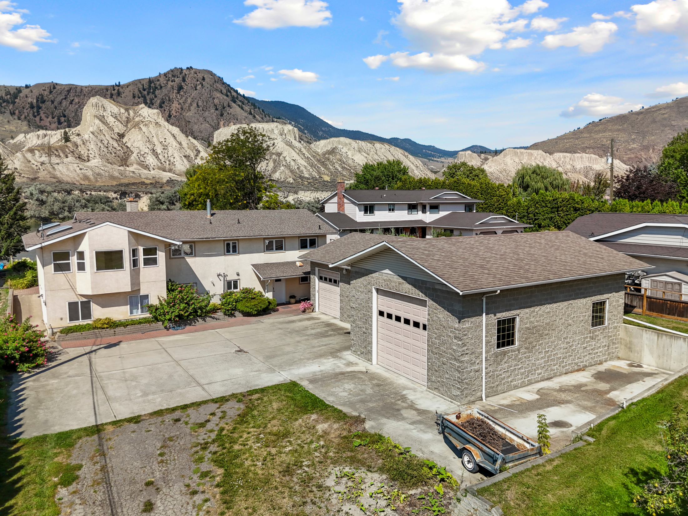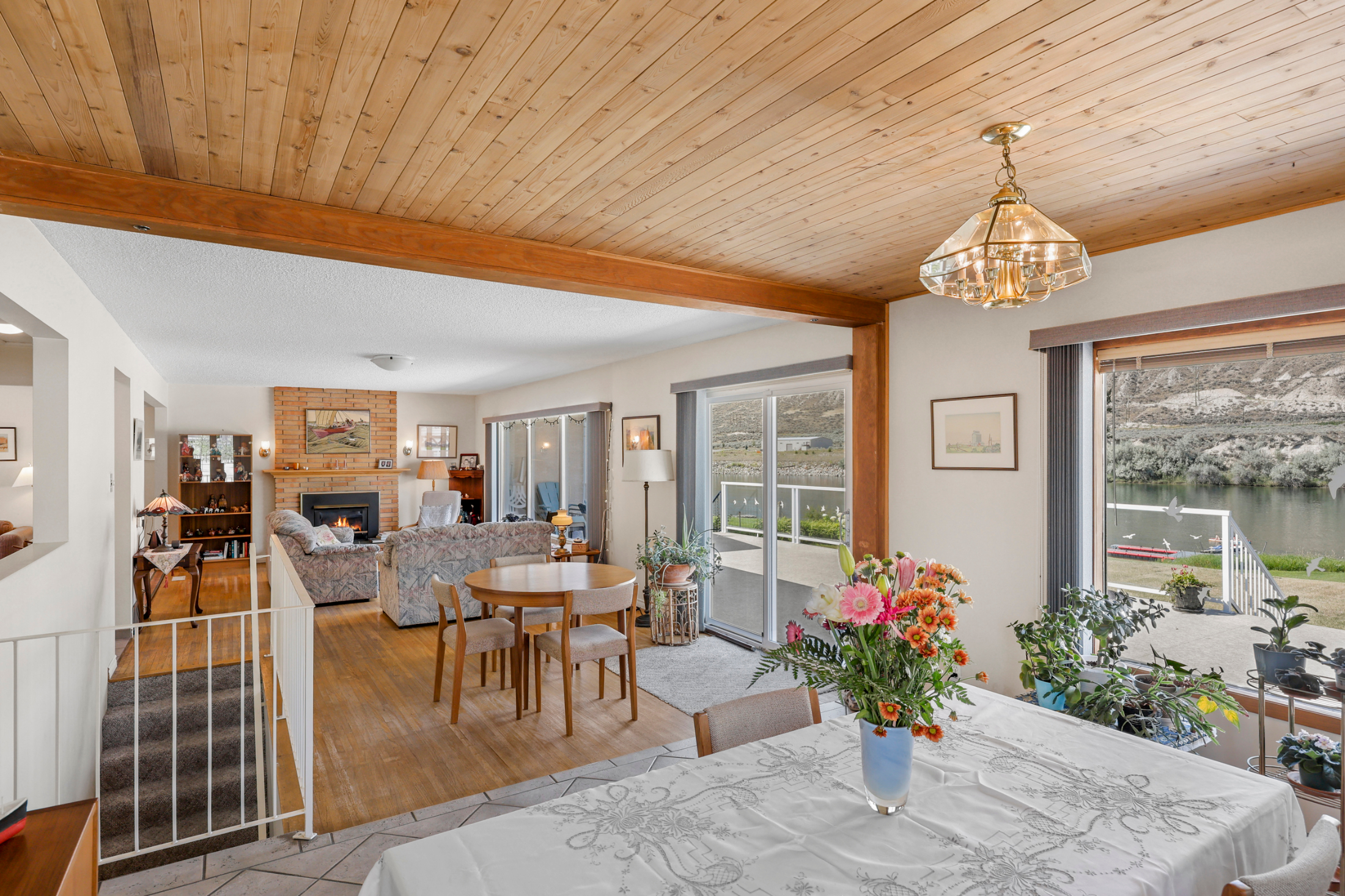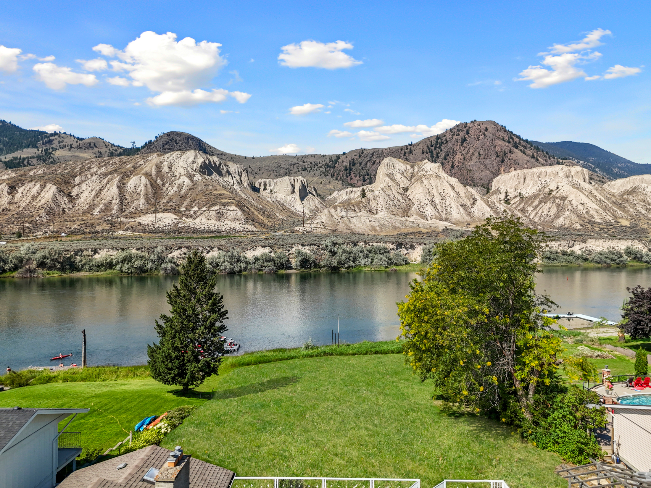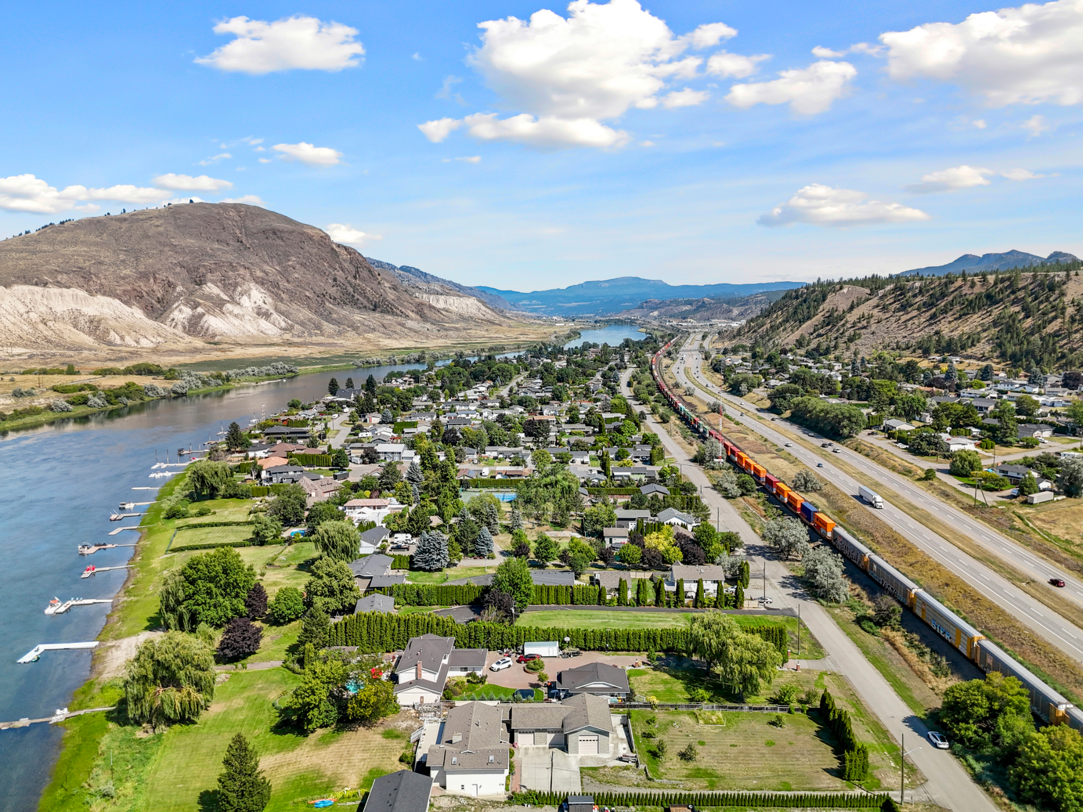 Stunning ¾ acre Dallas South Thompson Riverfront property with a spacious home featuring a HUGE oversized 3 car garage and subdivision potential. Upon driving up to this property you will find a large private driveway alongside a grassy space with numerous fruit trees and room for development, new house build, carriage house? (see city of Kamloops).