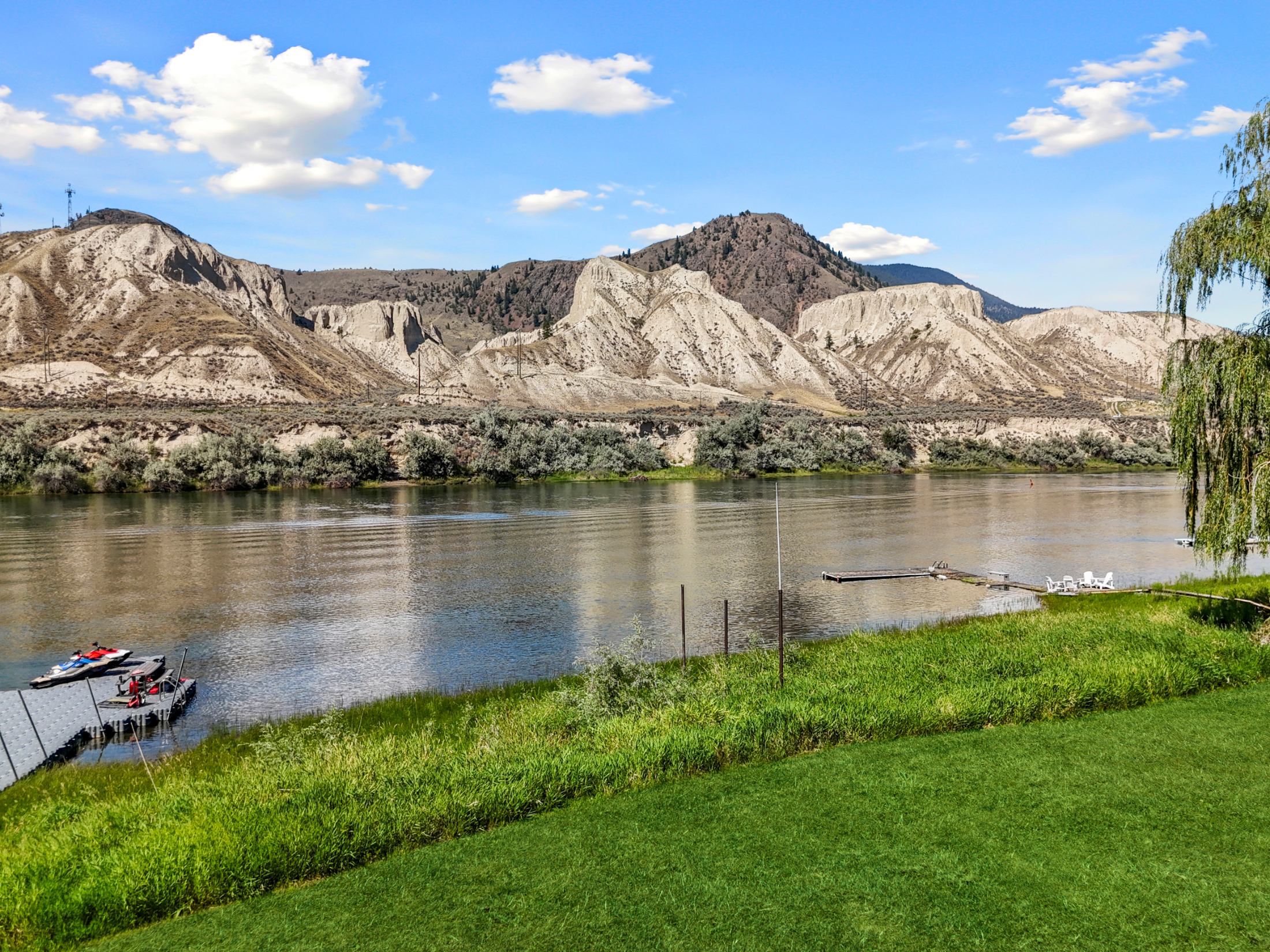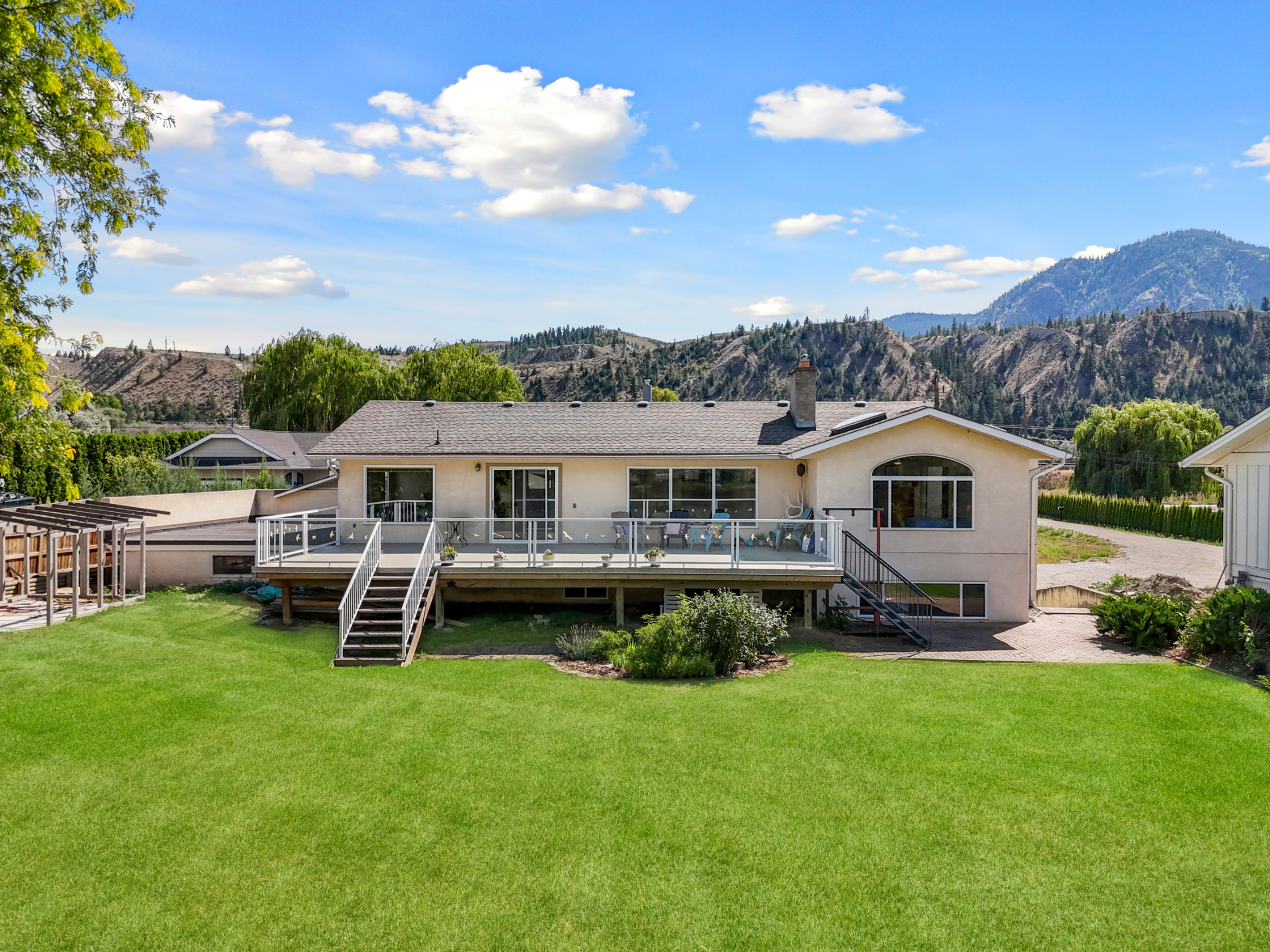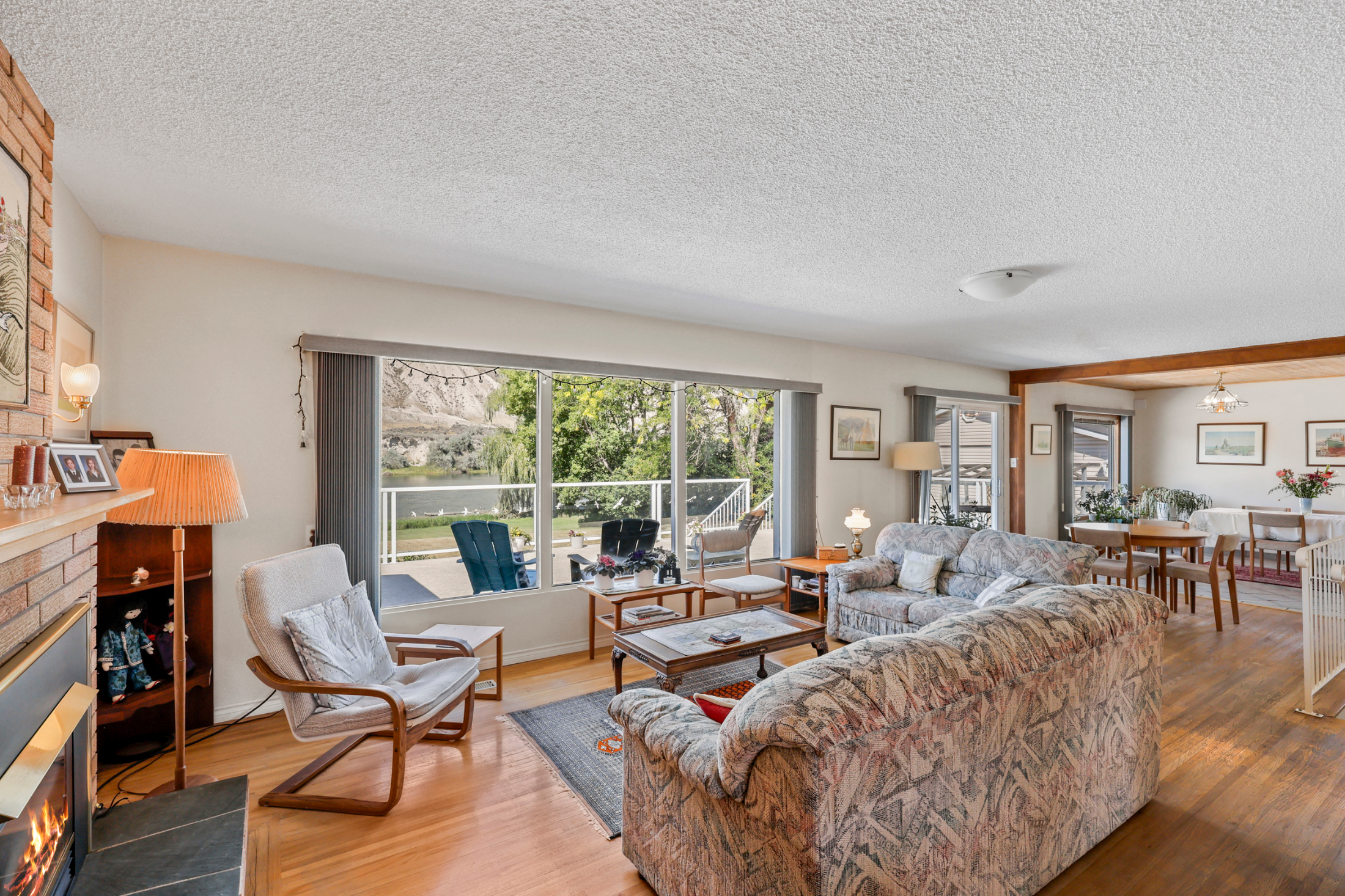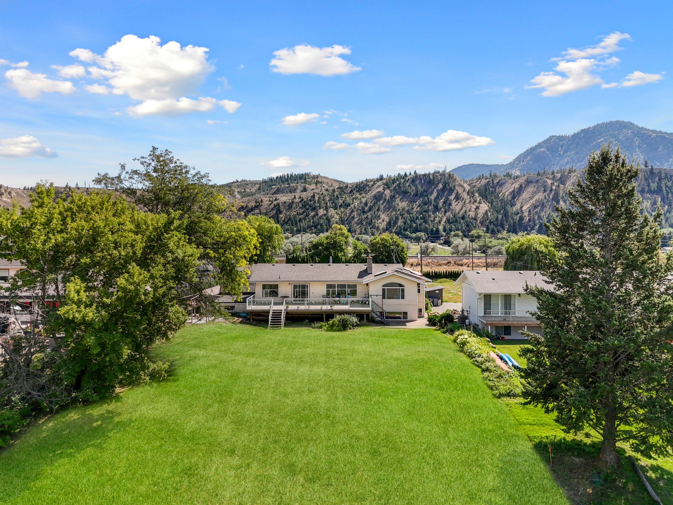 Stunning ¾ acre Dallas South Thompson Riverfront property with a spacious home featuring a HUGE oversized 3 car garage and subdivision potential. Upon driving up to this property you will find a large private driveway alongside a grassy space with numerous fruit trees and room for development, new house build, carriage house? (see city of Kamloops).