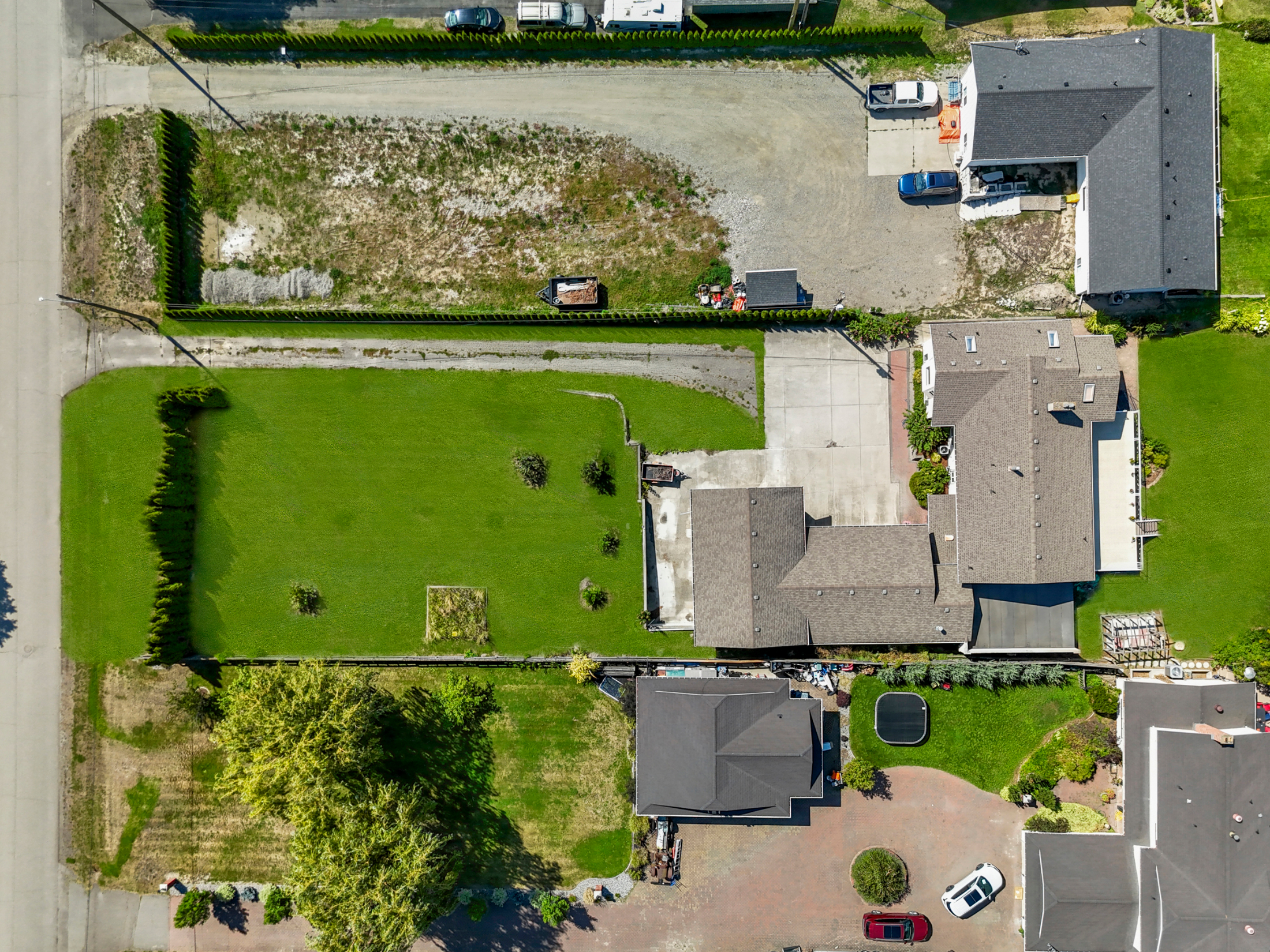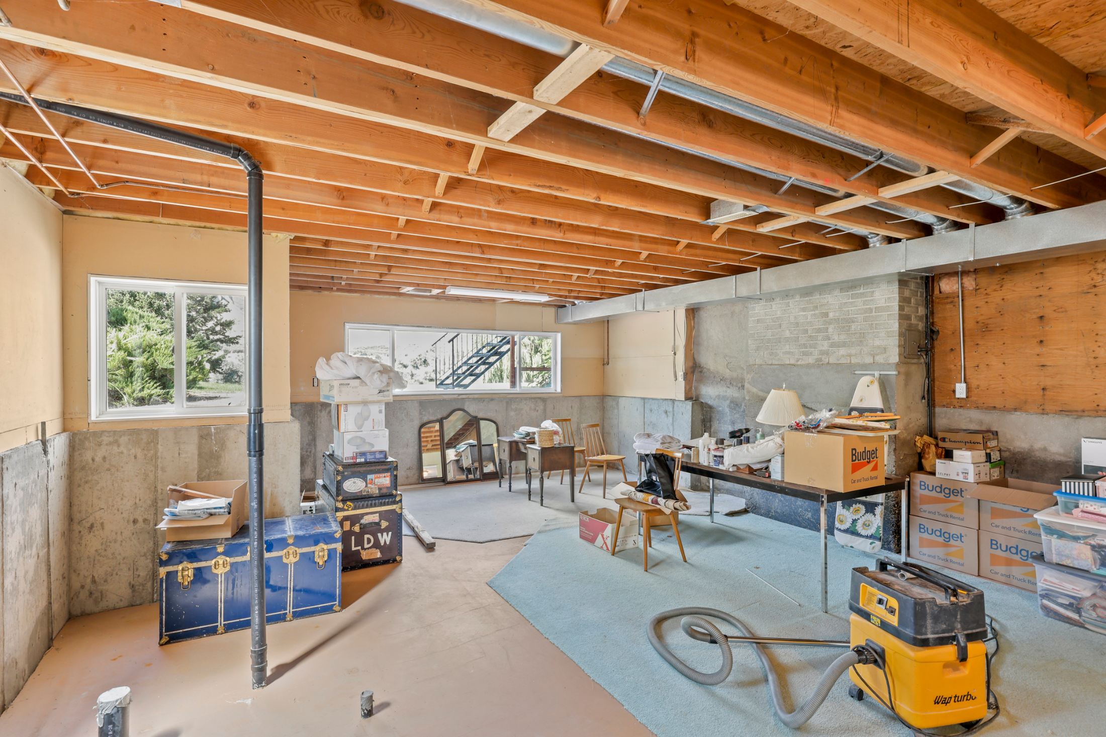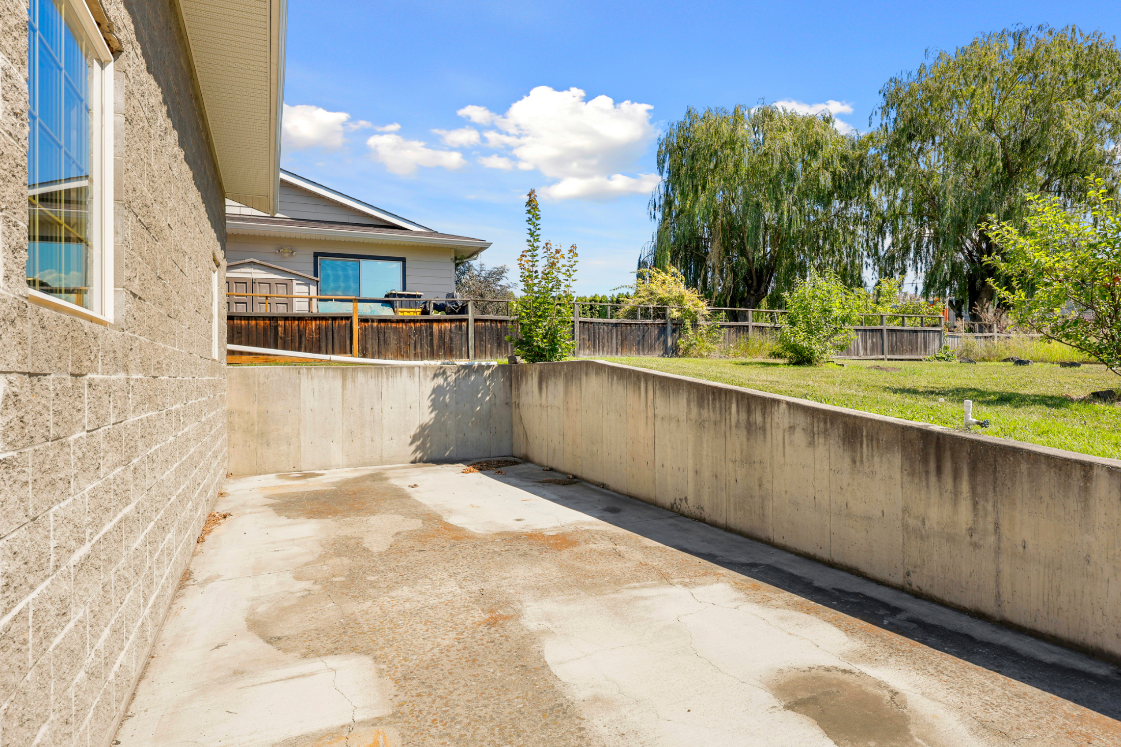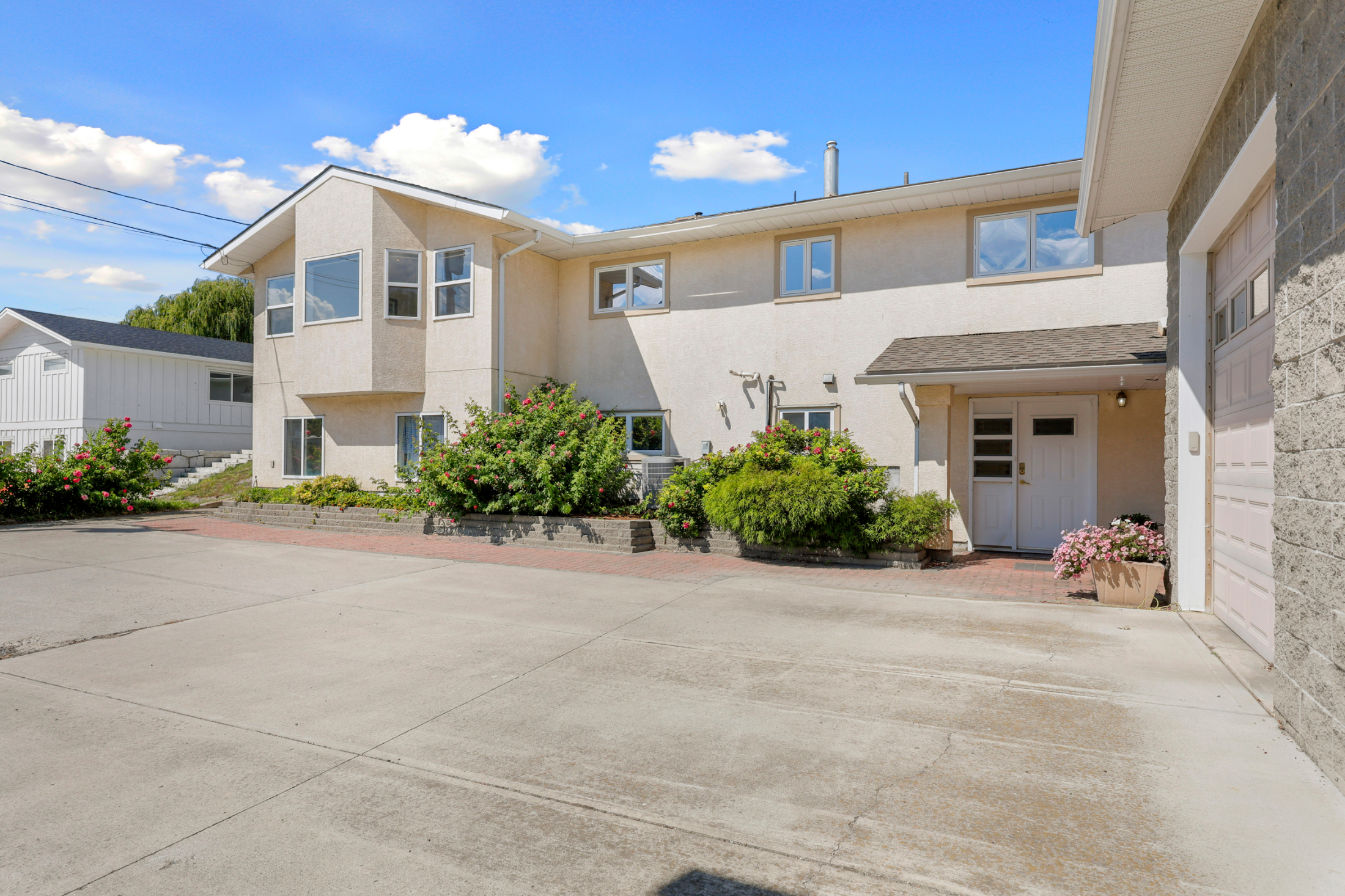 Downstairs has so much potential! There is summer kitchen off of the main foyer, great for overflow food prep. To the left of the foyer there is tons of living space with a large family room, bedroom and 2 piece bathroom. Through double French doors you will find additional unfinished space, perfect for a 2-bedroom suite or more living space. This space has a separate side entry, roughed in plumbing ready to go and 2 framed bedrooms.