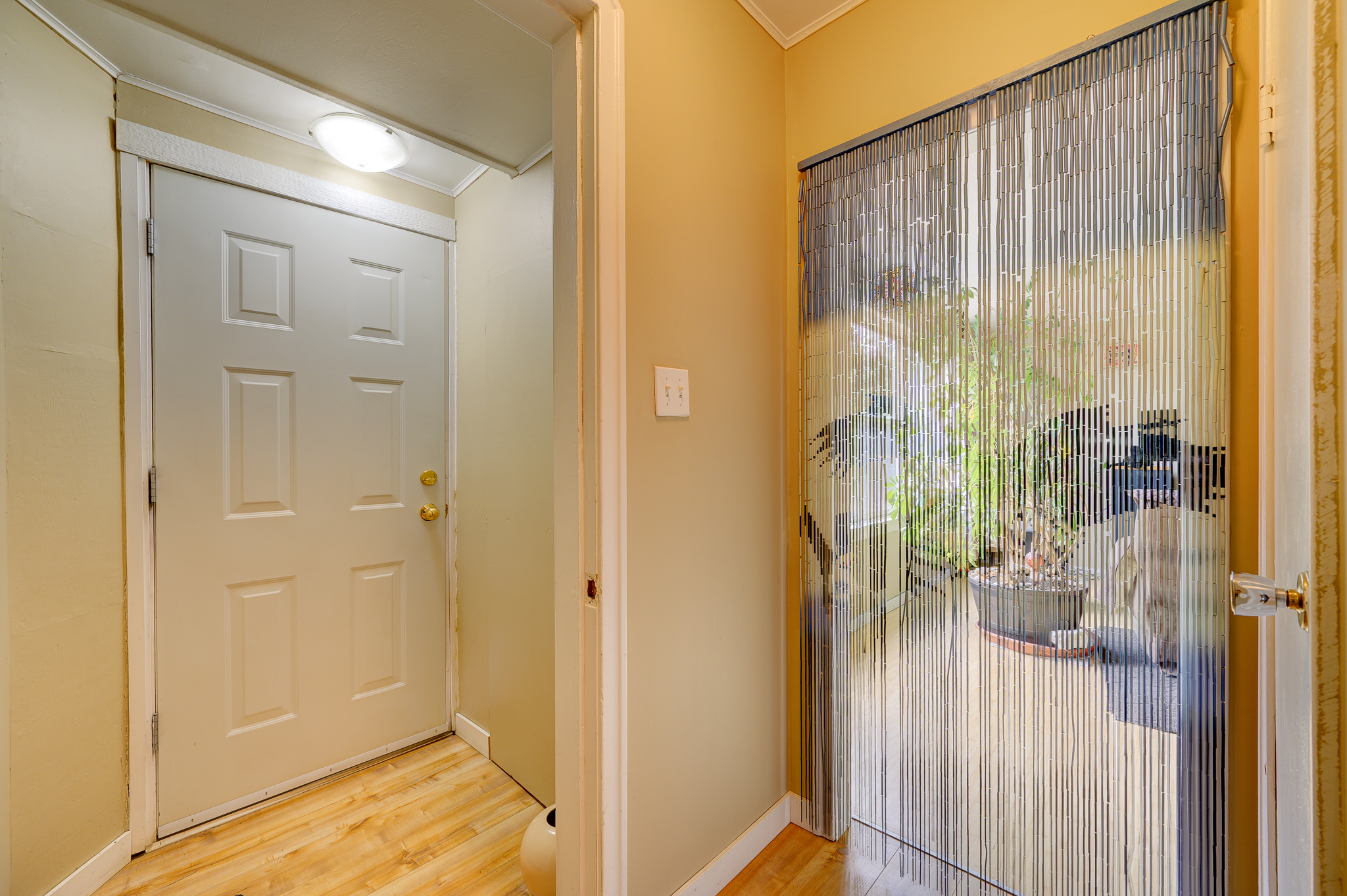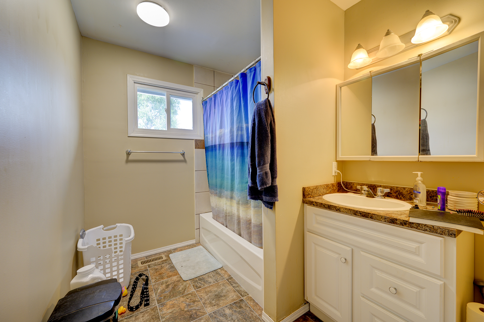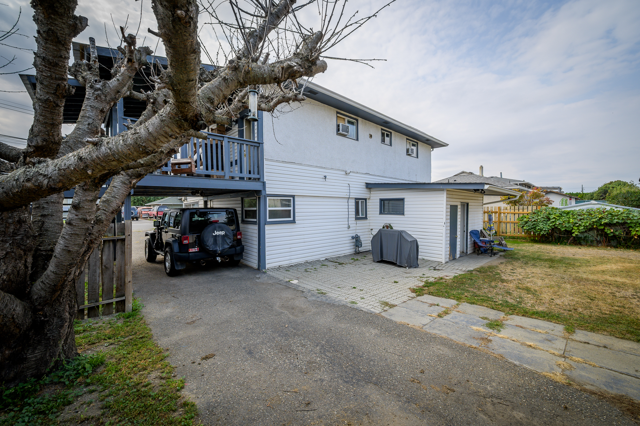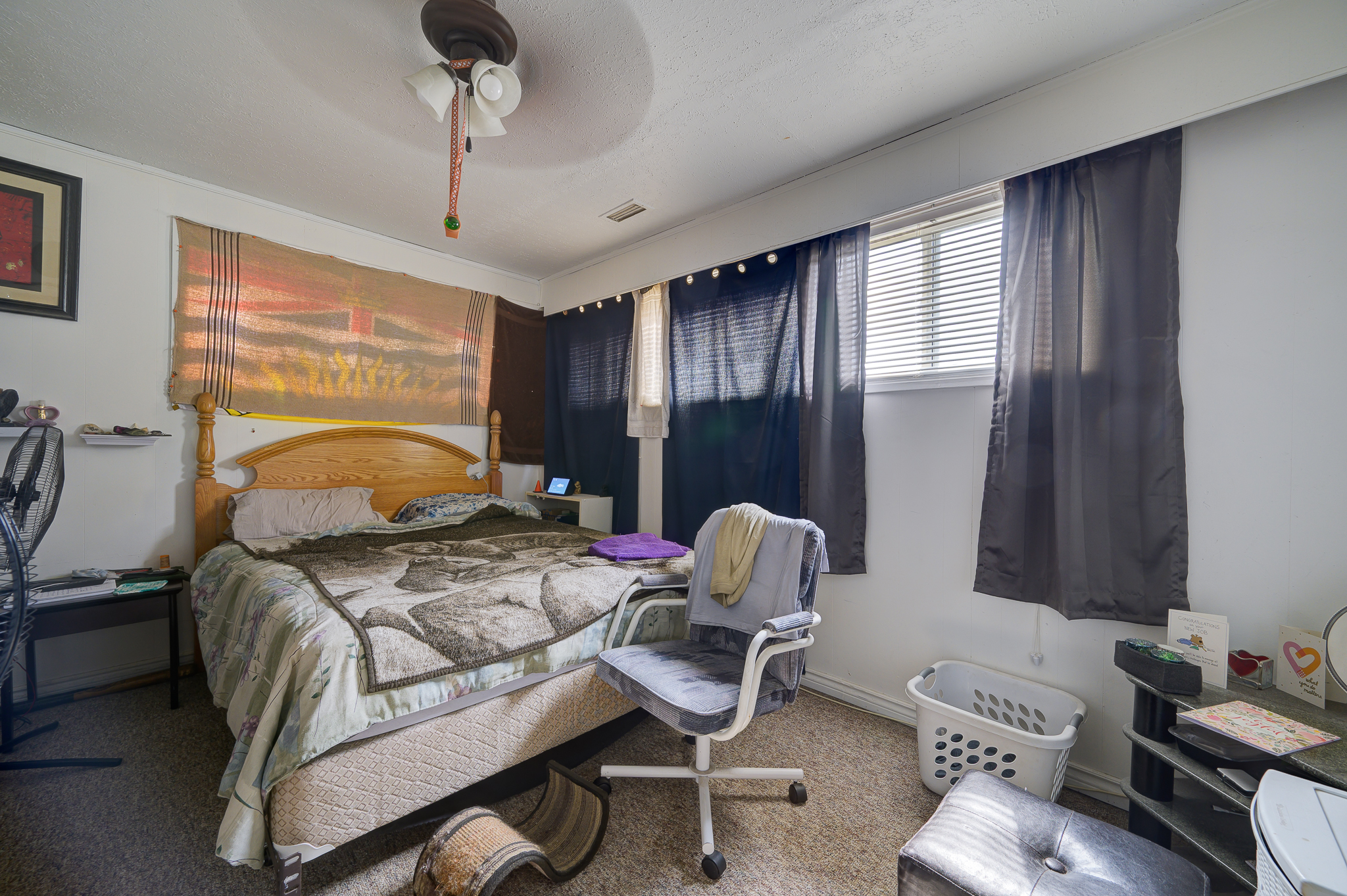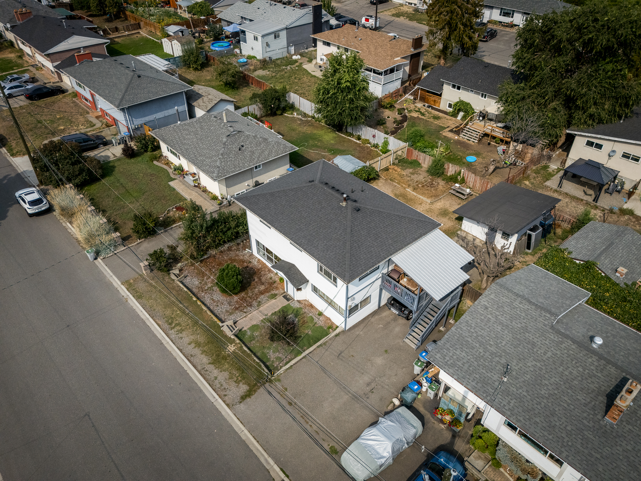 This two level home features 5 bedrooms and 2 bathrooms. The two suites are totally separate from one another. The top floor includes 3 good sized bedrooms. The main living space is open and spacious. It walks out to a large covered patio which is private for the top floor residents.