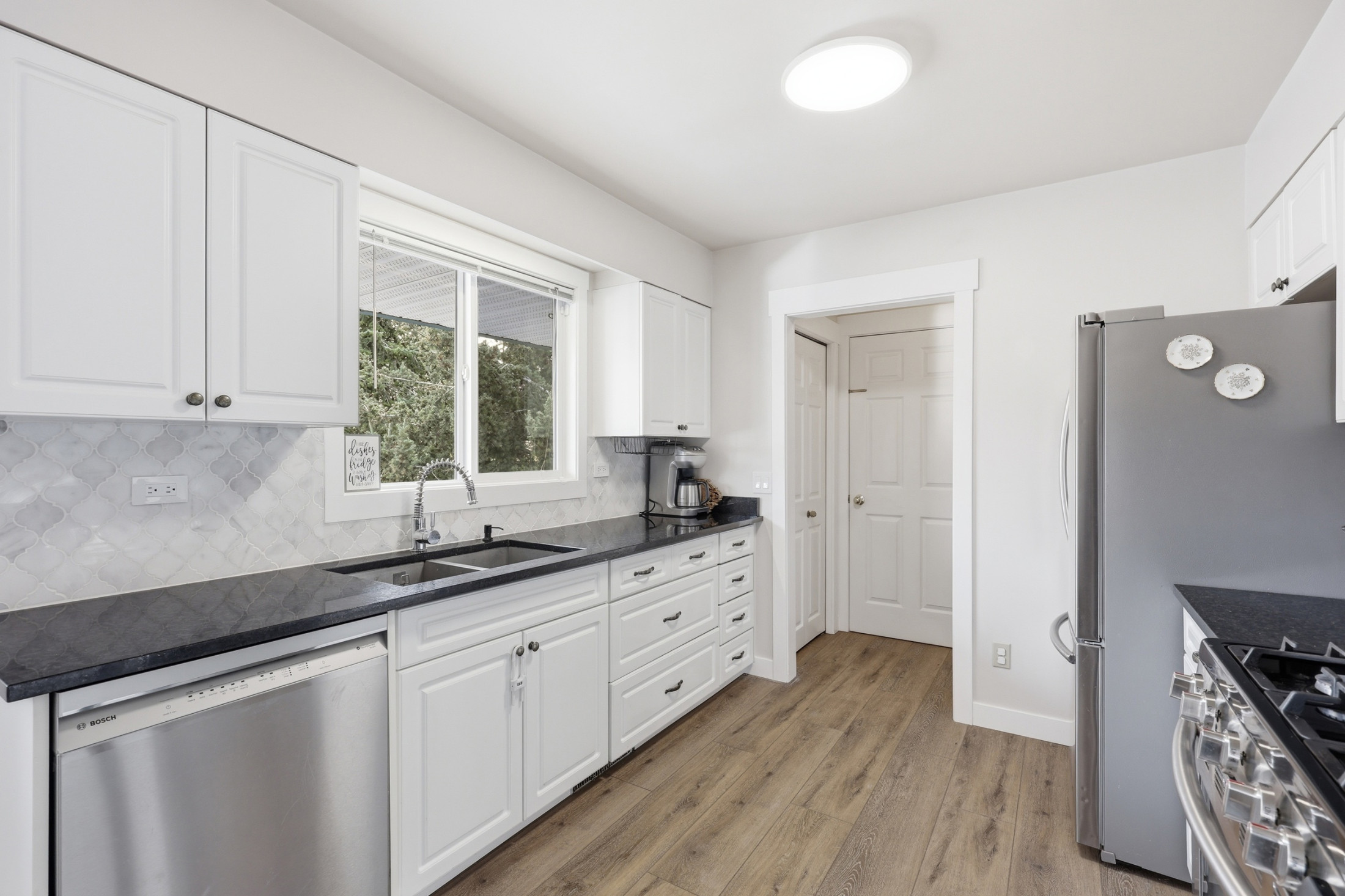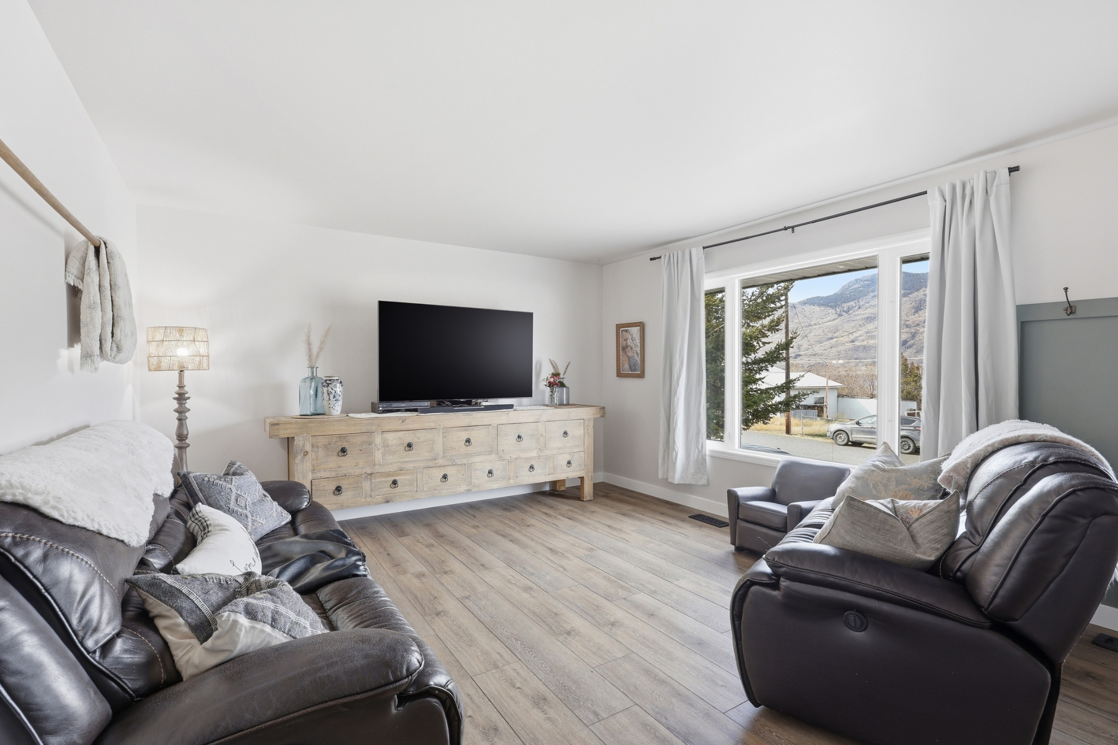 The living room is warm and inviting with a large bright window and stunning views of Kamloops lake. The large updated kitchen offers plenty counter space, granite counter tops and brand new backsplash. A raised pantry makes for plenty of storage for all your needs. Three good sized bedrooms and a large 4 piece bathroom complete the space. The main floor has been updated with all new flooring, paint, trim and lighting.