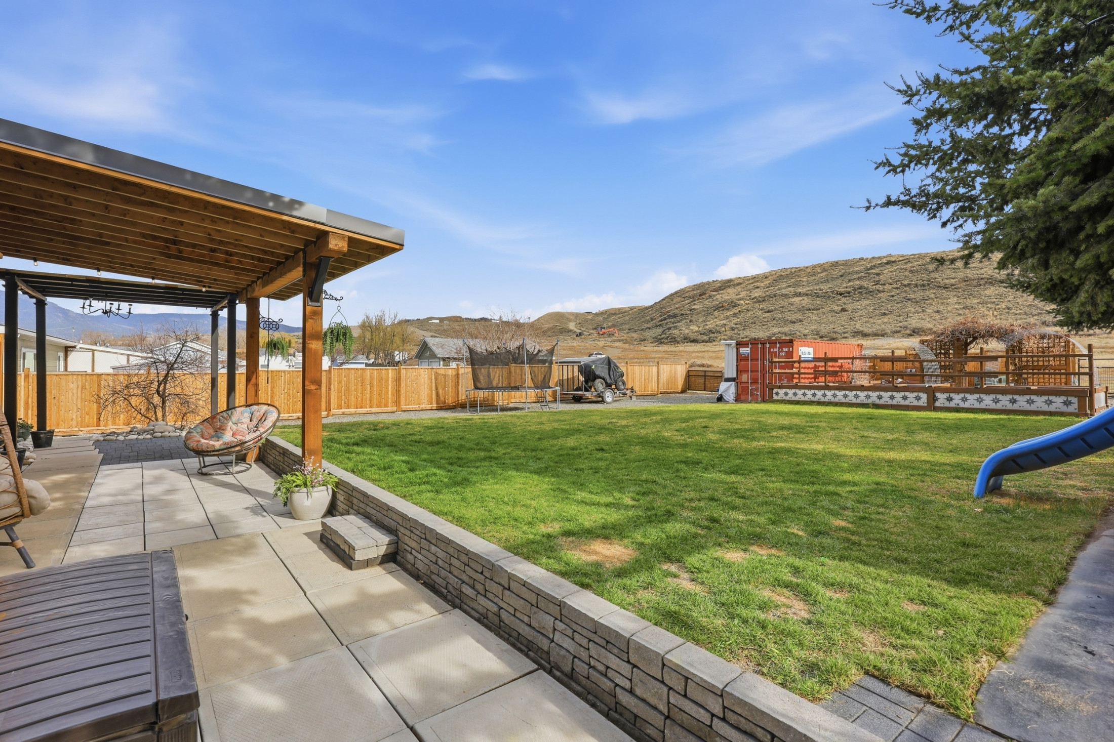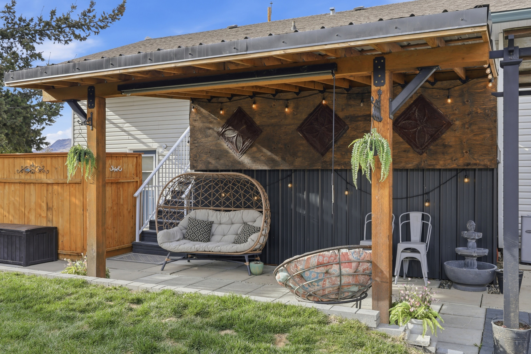The back yard is fully fenced with new cedar panels ready for your family and pets. Covered concrete patio space and view for miles. Quality time and memories will be made out here.