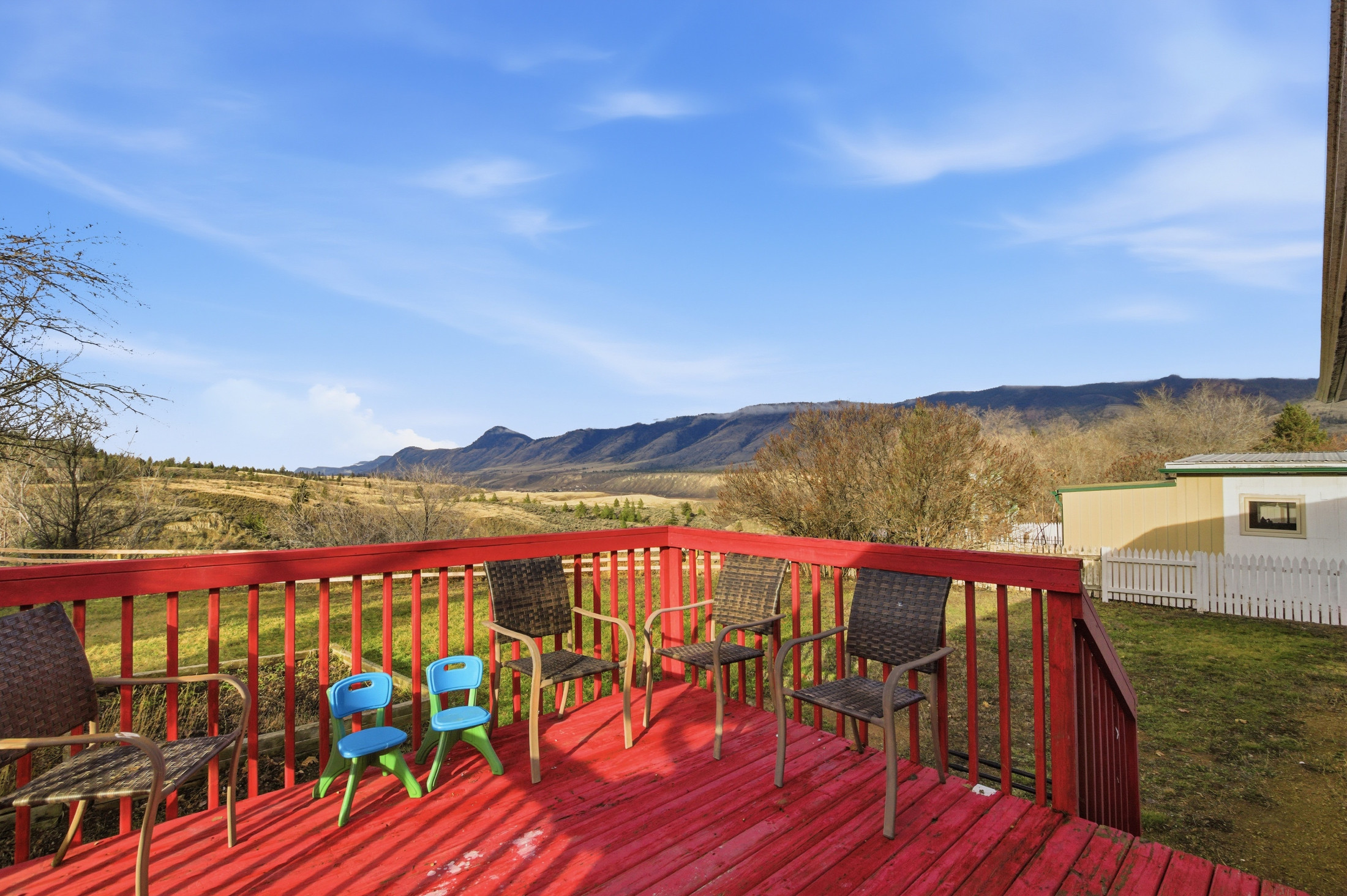 Outside, you have a fully fenced backyard making it ideal for kids and pets. There is also ample room for veggie gardens and flowers for anyone with a green thumb, or wide-open space for the person who loves to entertain friends and family. From the living room window, the deck, or the backyard you’ll love taking in the amazing views of the mountains and valley below.