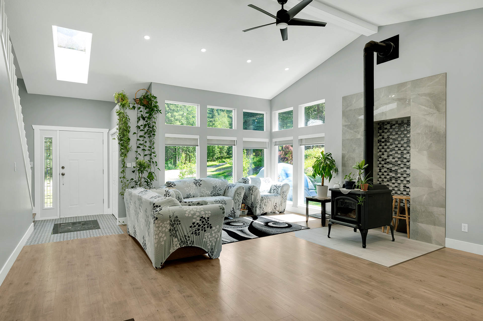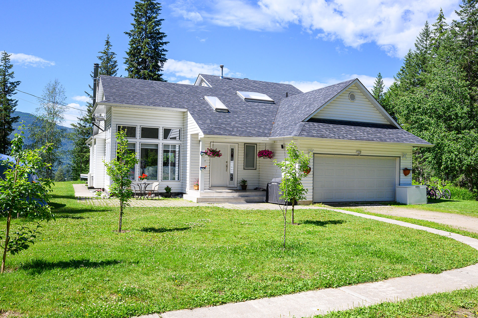 This home is just like new, it has a ton of renos. Level entry access to a large open great room with wood stove for heat & vaulted ceiling. The kitchen has been entirely upgraded with stone counters, cabinetry & stainless steel appliances. Walk out access to a large patio overlooking southern valley views. The main floor also includes the primary bedroom with walk in closet & fully updated 3 piece ensuite, additional main floor bedroom, 2 piece bathroom & main floor laundry.
