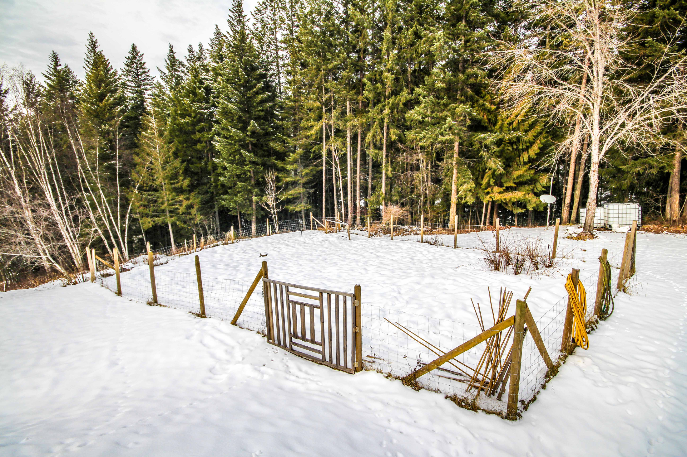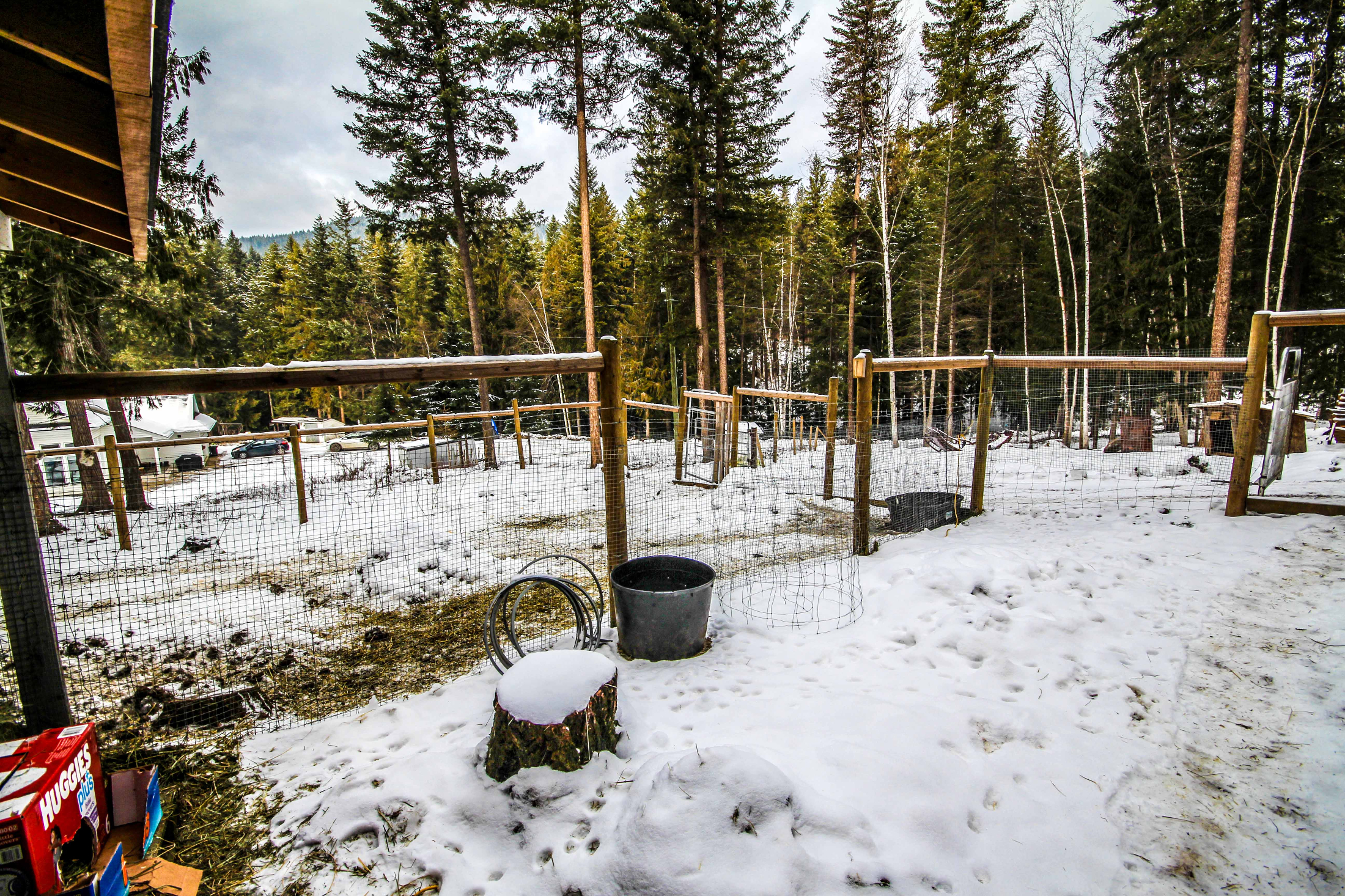 Separate fenced area currently used for chickens, sheep & goats. The property is mostly fenced & fence posts are in to complete the fencing. Separately fenced space for animals & garden. There is an additional space for a 2nd property to be built, subject to regional rules. The flat space is easily accessed from Heather Street & would also be perfect for additional animals our outbuildings.
